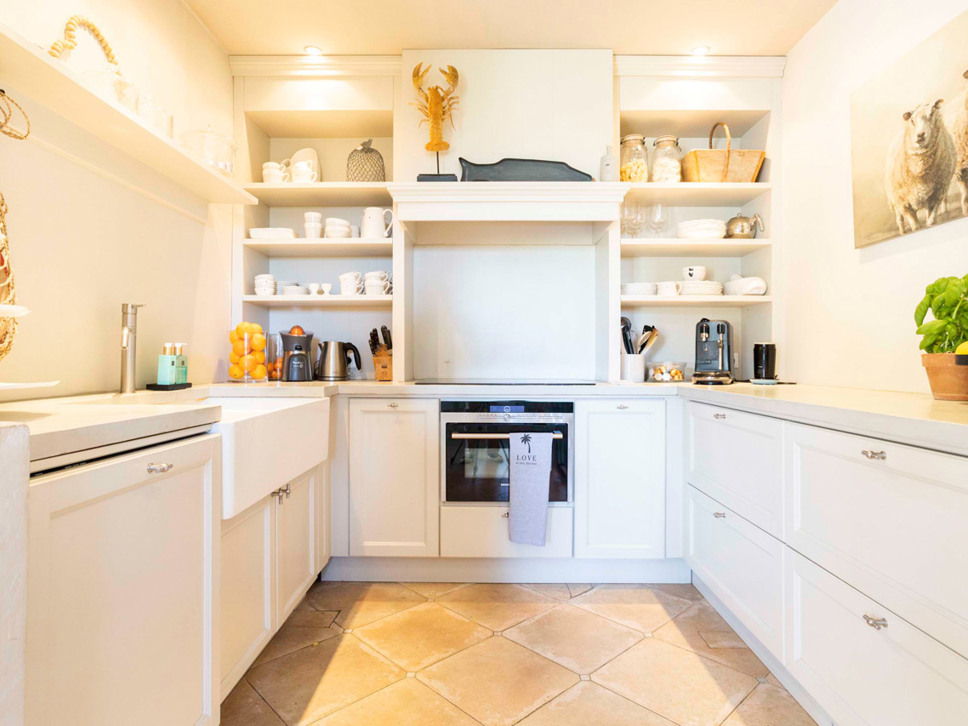 Naast het zwembad bevindt zich een overdekte zomerkeuken (koelkast en grillplaat en gas-BBQ) compleet met houten eettafel. Een fijne plek om te genieten van een glas rosé in de avondzon.