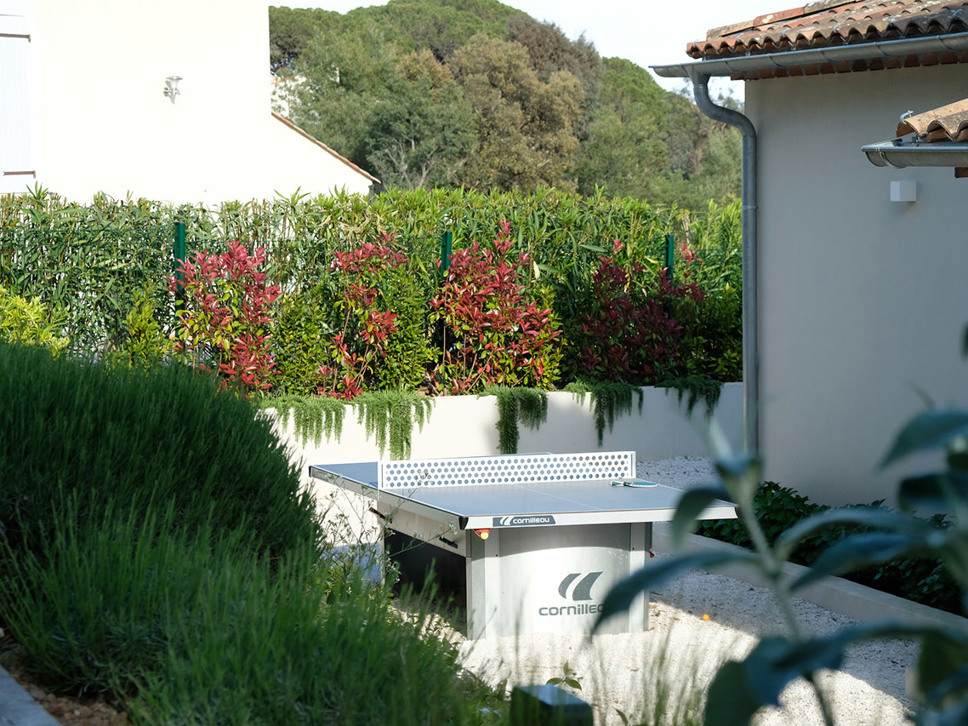 Aan de achterzijde van de villa wacht u een jeu de boules baan, een buiten schaakspel en een tafeltennistafel op enthousiaste deelnemers. Verschillende fruitbomen, waaronder een citroenboom, limequat, kumquat, vijg en kersenboom, sieren de tuin. De Zuid-Franse geuren van lavendel, rozemarijn en jasmijn voegen een heerlijke ambiance toe.