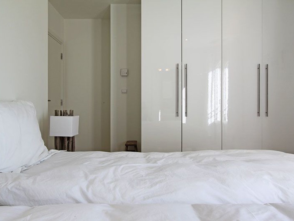 Slaapkamer 2,(eerste verdieping) voorzien van een tweepersoonsbed (200x220) en een balkon. En-suite badkamer met douche en toilet.