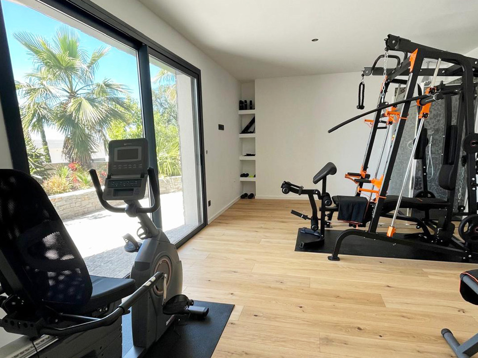 Cinema room & Gym. Op de begane grond bevindt zich de privé-gym met professionele fitnesstoestellen en een badkamer. Op dit niveau is tevens de fraaie cinema room.