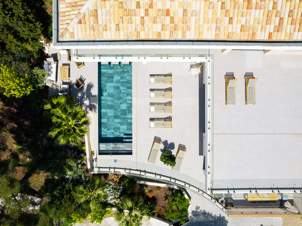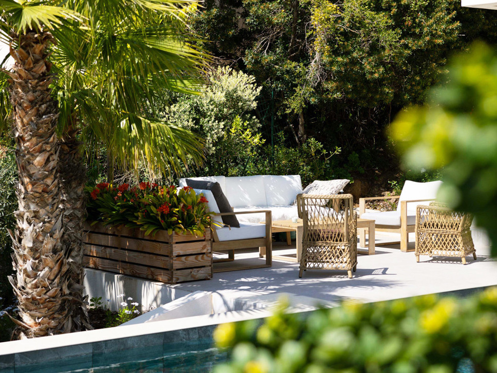 Privézwembad. Het zwembad ligt op het terras op niveau zwembad en living. Diverse luxe ligbedden en een fraaie loungeset completeren het luxe Zuid-Frankrijk gevoel.