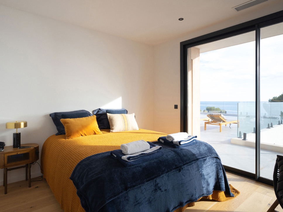 Op de bovenste verdieping (verdieping 2) bevindt zich een groot zonneterras met ligbedden en een fraai uitzicht over de Middellandse Zee.