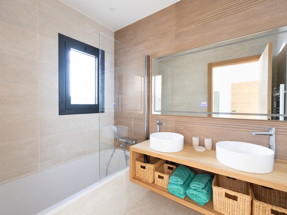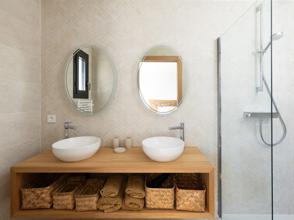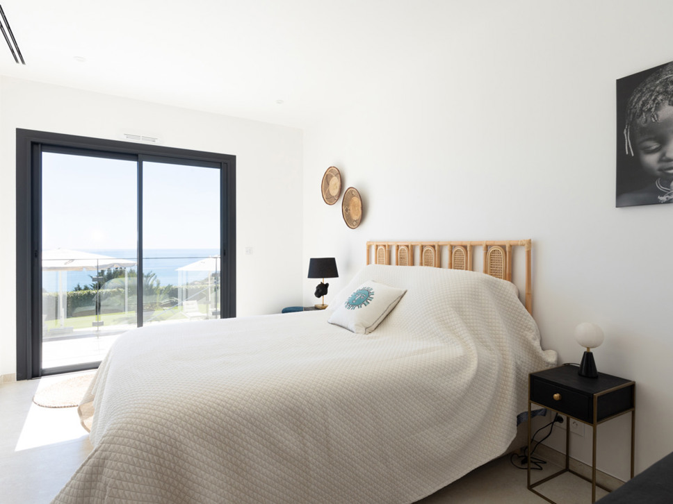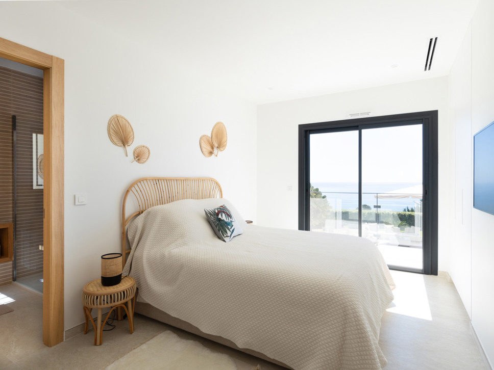 De villa beschikt over 5 luxe slaapkamers en 5 en-suite badkamers. Er bevinden zich 4 slaapkamers op de begane grond (niveau living en terras) en 1 op de 1e verdieping. Alle slaapkamers zijn voorzien van airconditioning en van een TV.