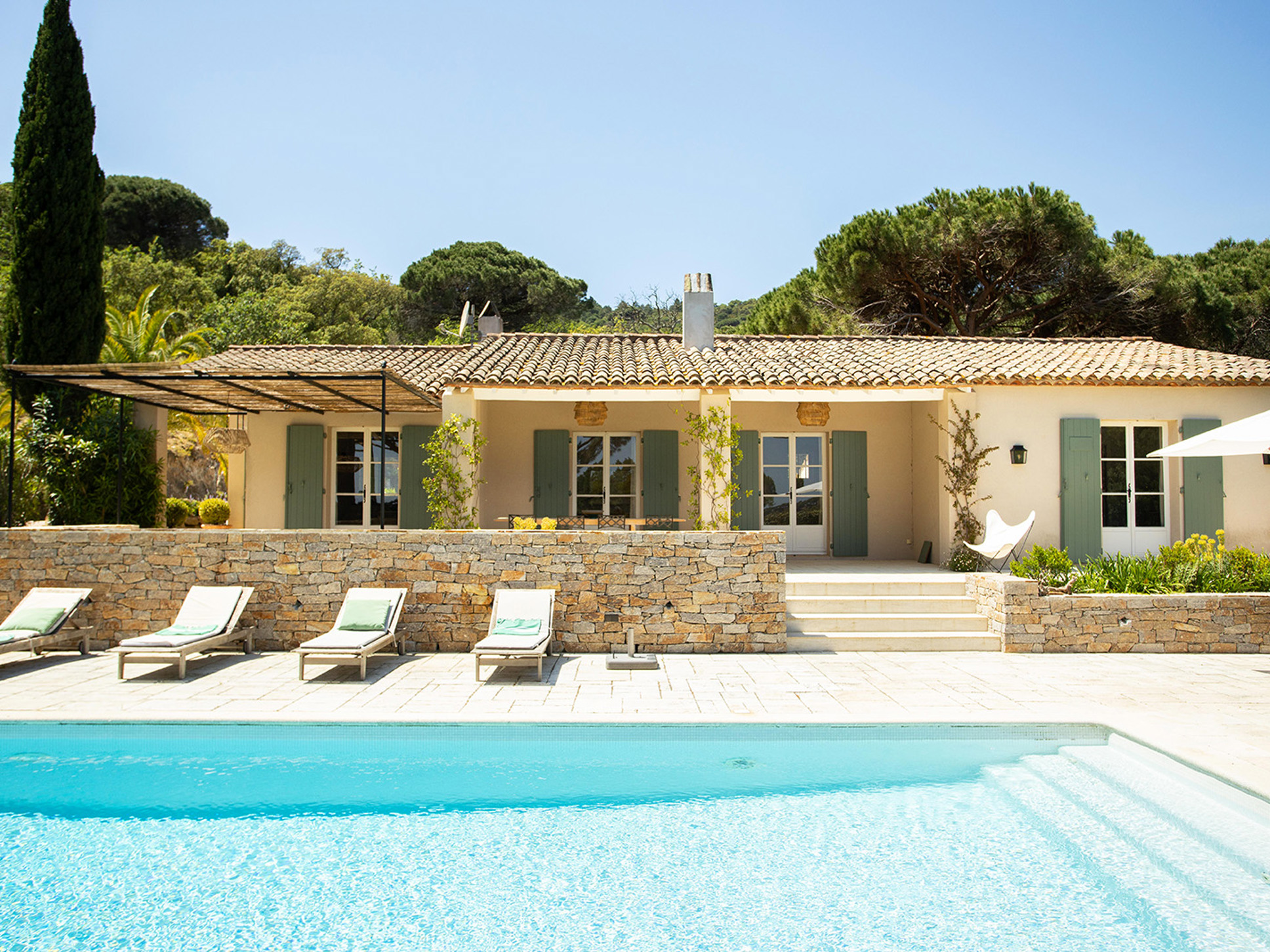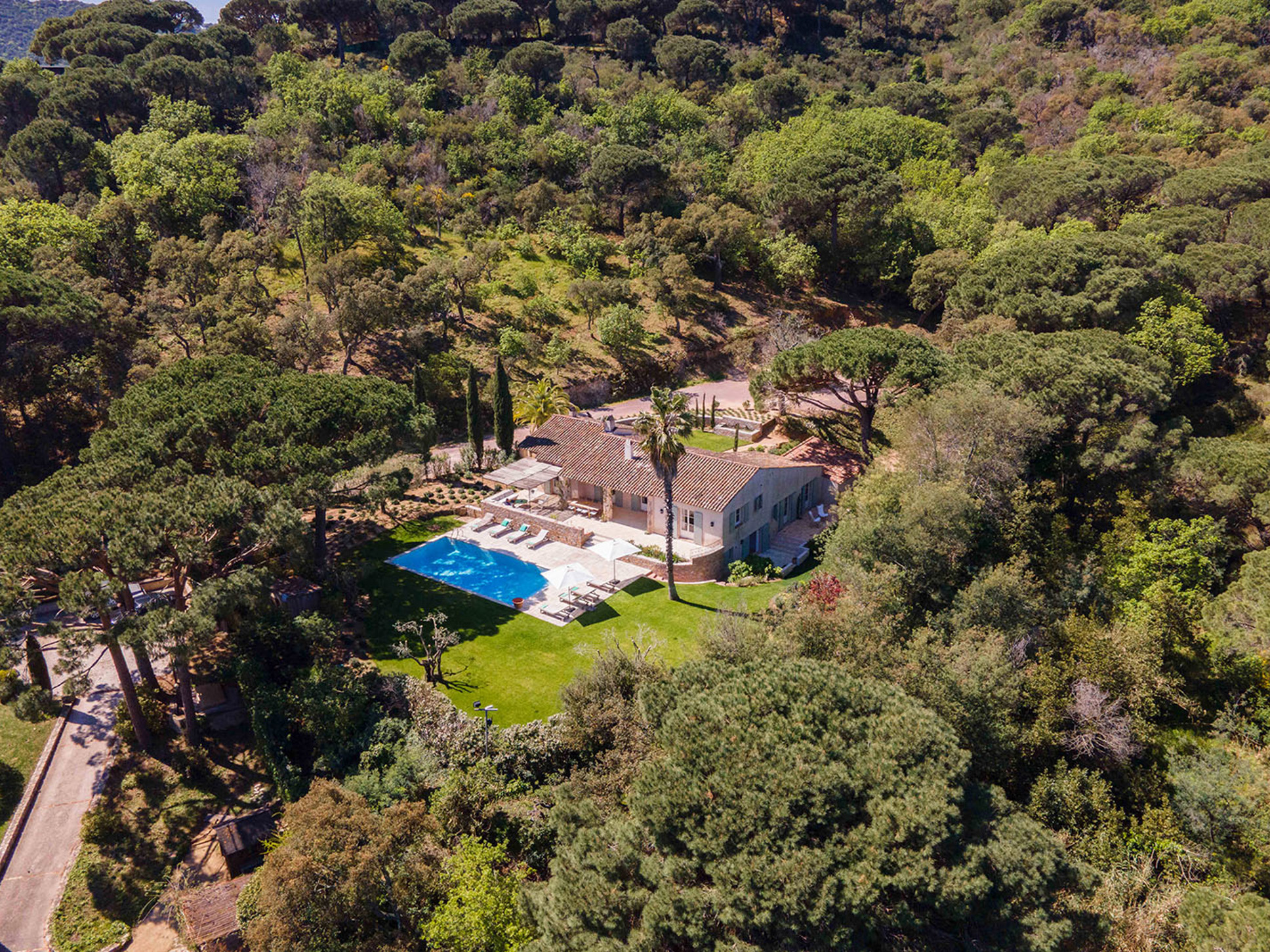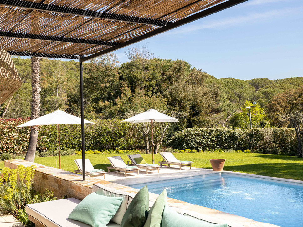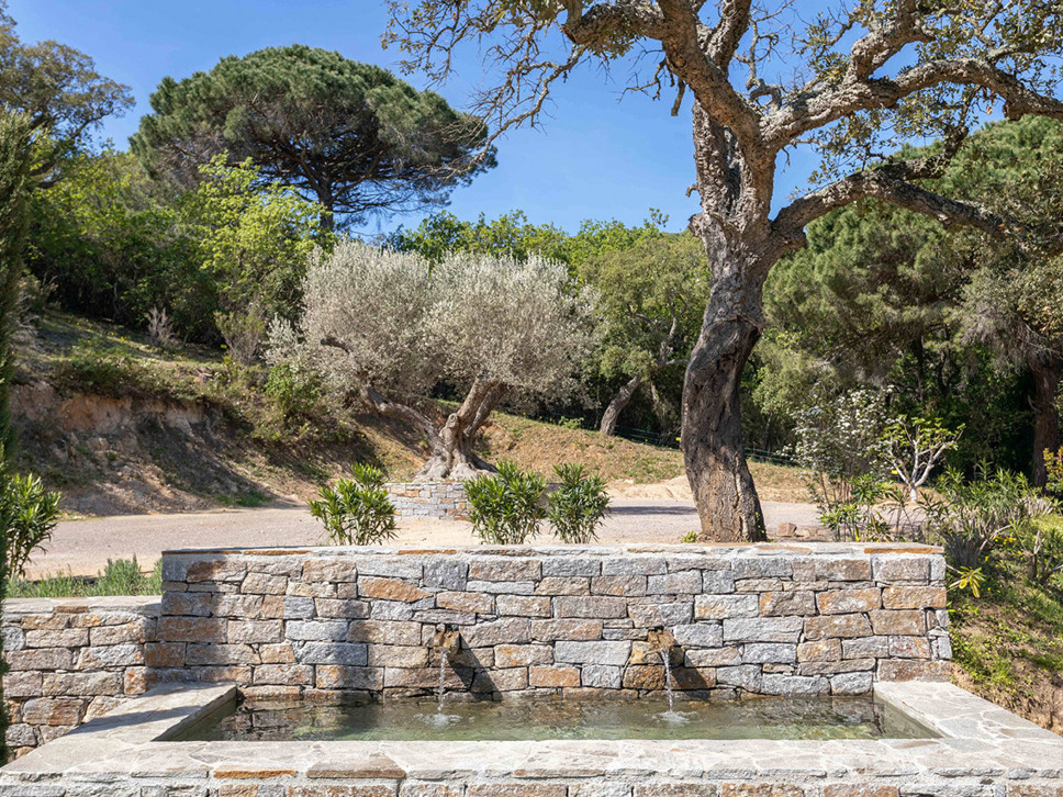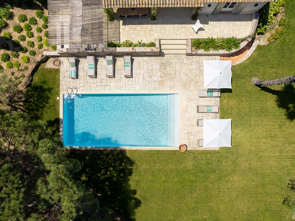 Een paar treden omlaag en u komt bij het zwembad (11 x 5 m). Azuurblauw water, grote Pins Parasol en comfy ligbedden completeren het luxe Zuid-Frankrijk gevoel.