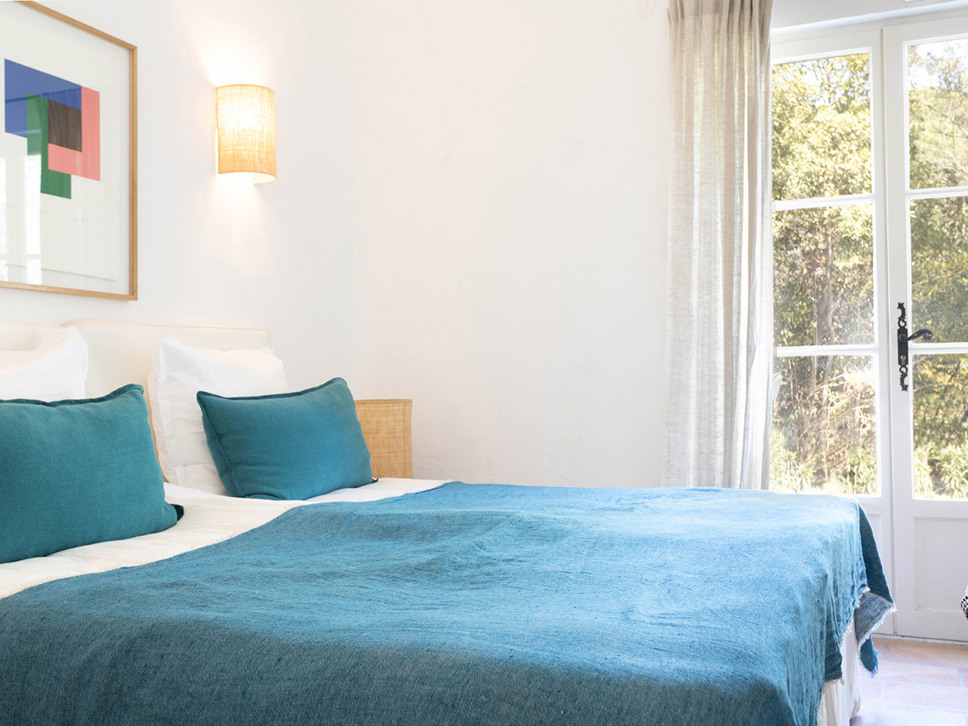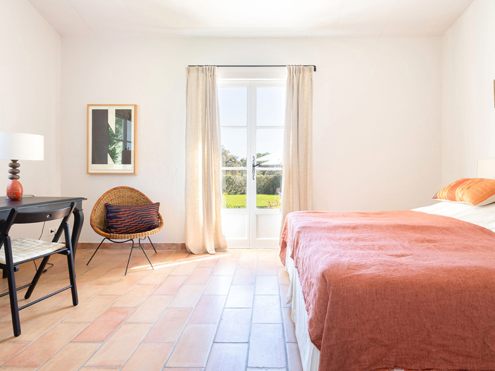 Slaapkamer 4 bevindt zich in een onafhankelijke studio die via de tuin toegankelijk is. Deze kamer is ingericht met een tweepersoonsbed (180x200) en beschikt over een badkamer en-suite met douche en separaat toilet.