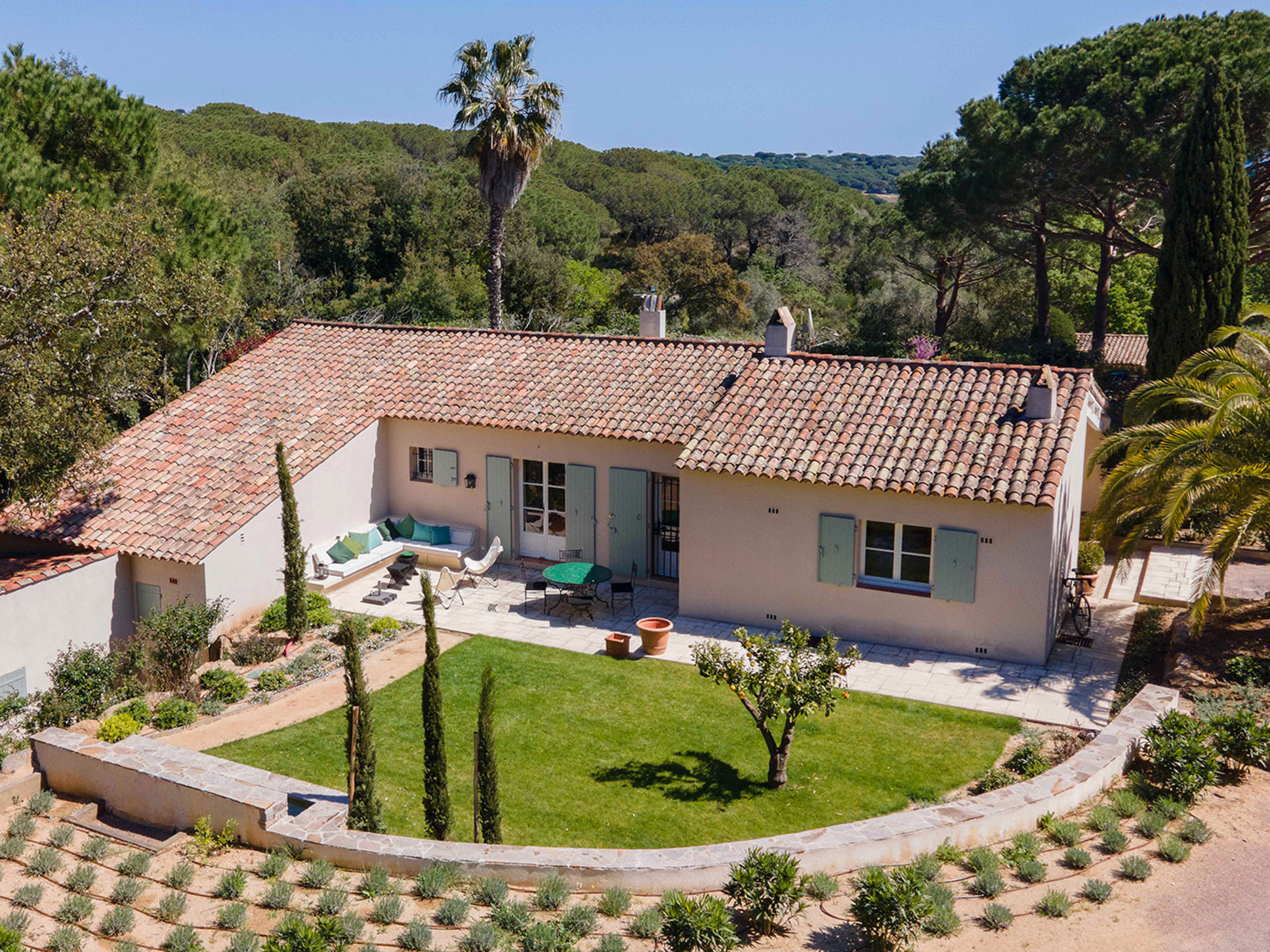 De ligging dichtbij Les Plages van Saint Tropez maakt deze villa zeer aantrekkelijk. Genieten van een mondaine lunch in een van de strandtenten op het Pampelonne-strand kan al in slechts 5 autominuten.