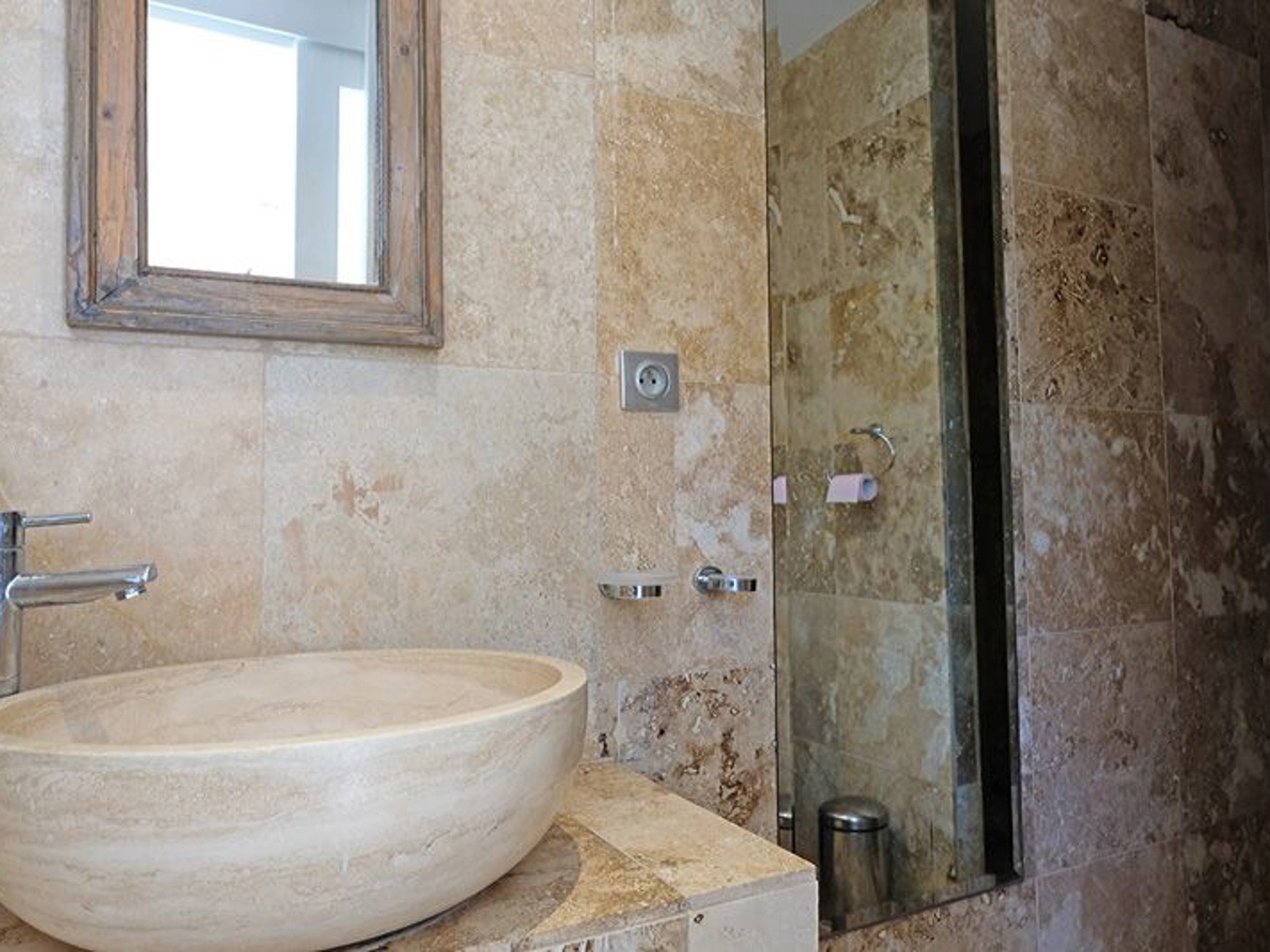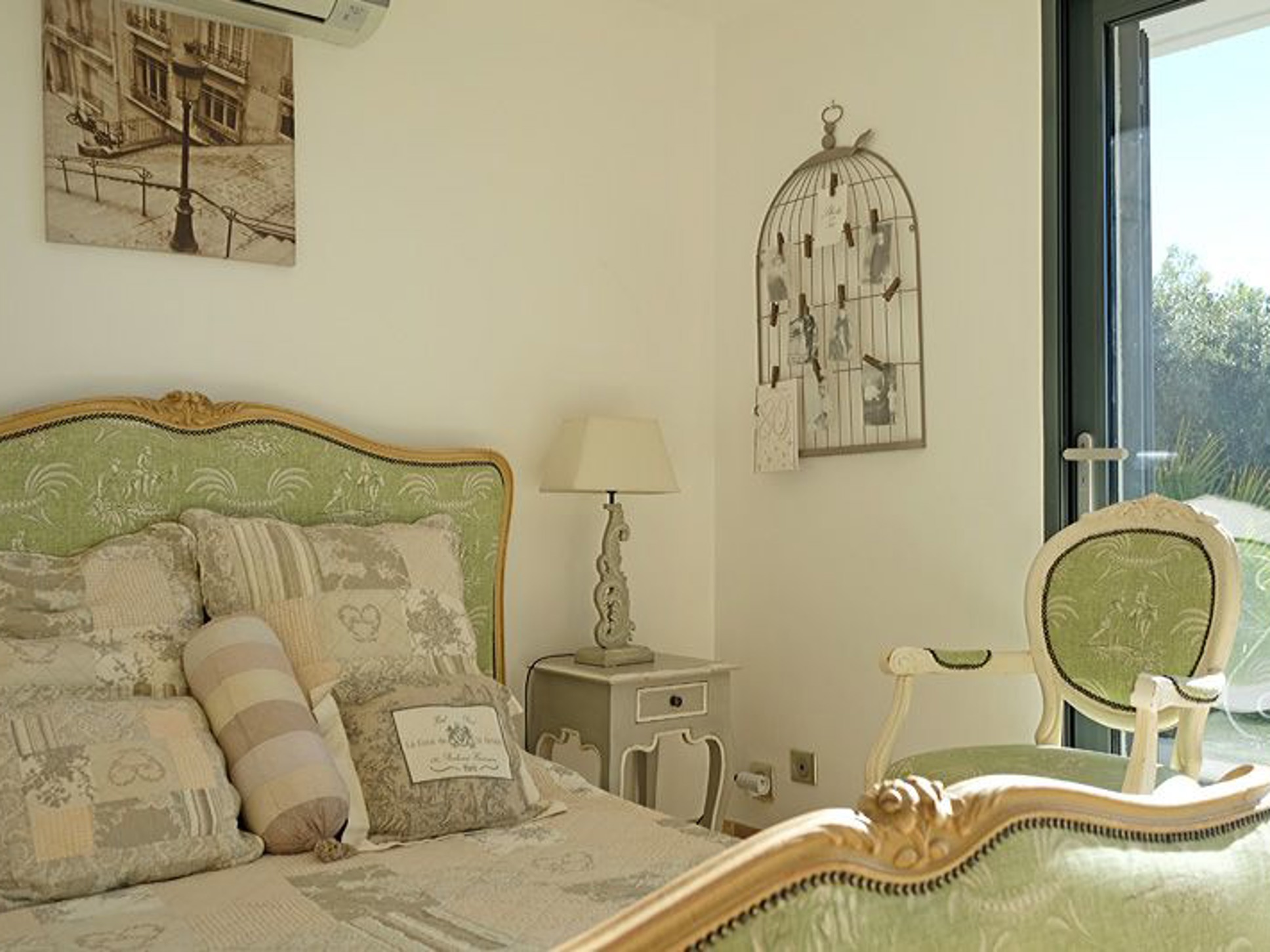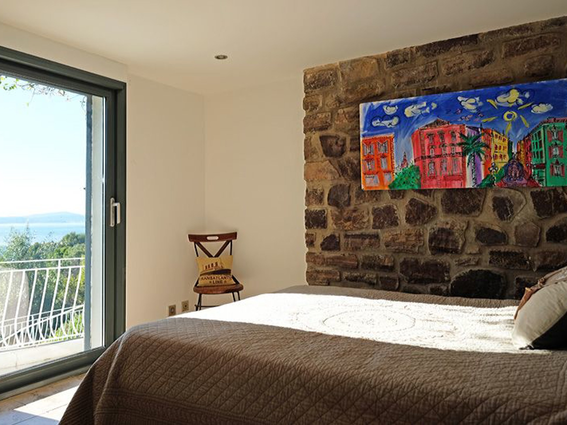 De villa heeft 4 slaapkamers in het hoofdgebouw en 1 in het separate gastenverblijf. Alle slaapkamers bieden een en-suite badkamer. De inrichting van de 4 slaapkamers in de villa is een mix van klassiek en modern. (De afmetingen van de bedden zijn 160x200 en 1 maal 140x190). De master bedroom heeft een badkamer voorzien van een bad, de overige badkamers zijn voorzien van een douche. Elke slaapkamer kijkt uit over de zee en biedt toegang tot het balkon. De gehele villa is voorzien van airconditioning.