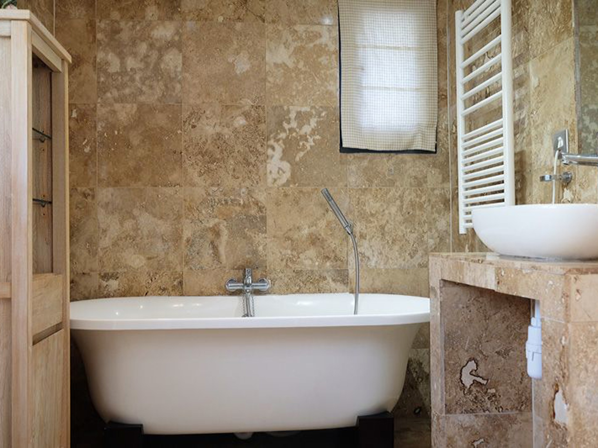 In de tuin bevindt zich een charmante en separate studio. Dit is slaapkamer 5 welke is voorzien van een tweepersoonsbed (160 x 200) en een badkamer met douche, wastafel en toilet. Voor de studio is een klein terrasje met een zitje. De studio is tegen een toeslag mee te huren (zie toelichting bij 'Omgeving'). Zonder de studio is de villla geschikt voor 8 personen.