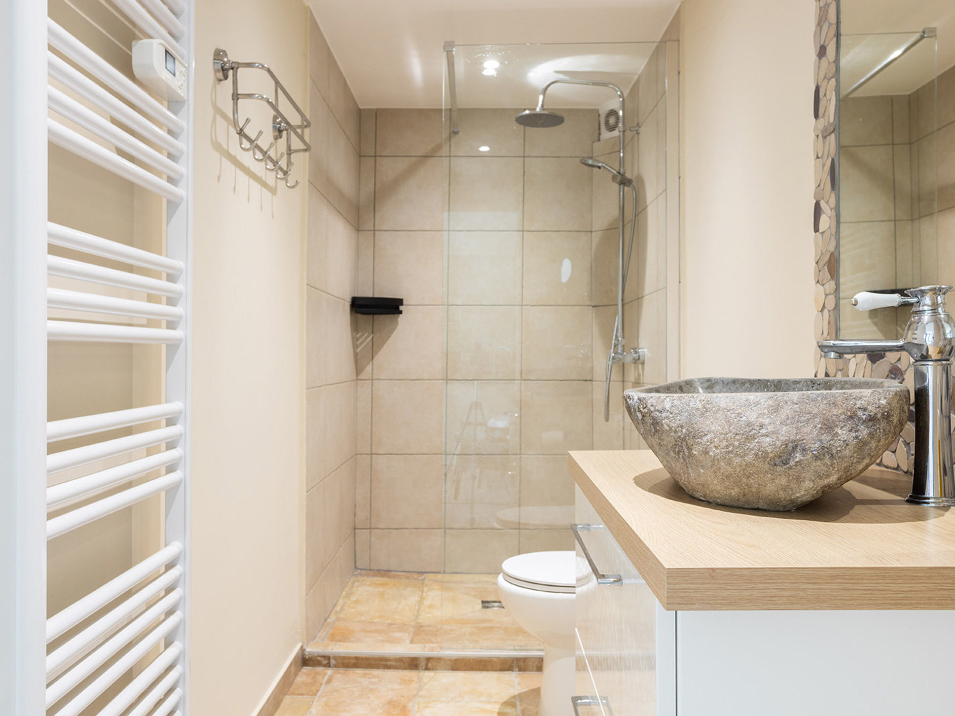 Op de benedenverdieping; Slaapkamer 3 is voorzien van een tweepersoonsbed (180x200). De badkamer is en-suite (wastafel en douche in bad).
