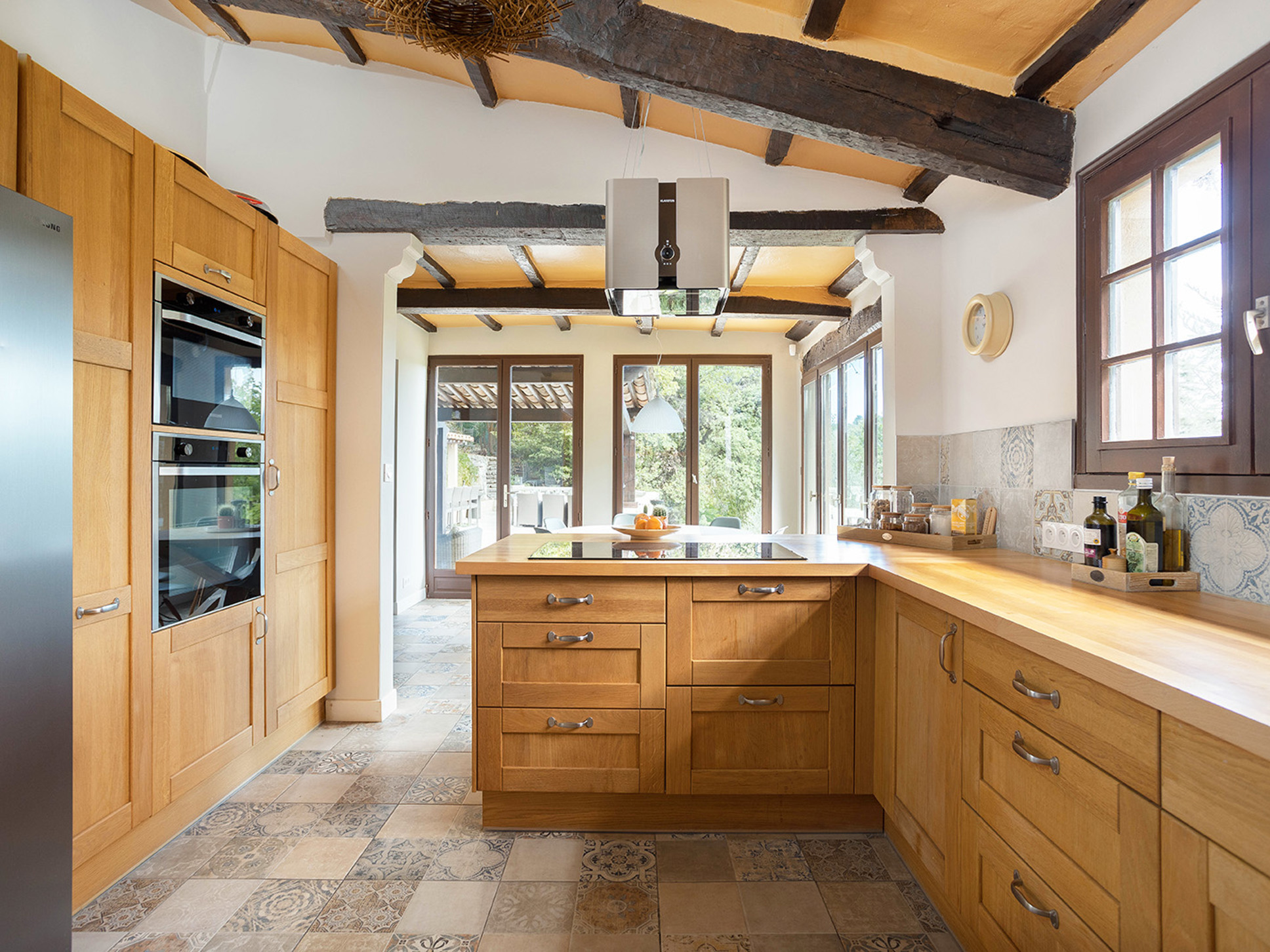 In het verlengde van de living bevindt zich de open keuken. Modern en compleet ingericht en voorzien van o.a. een inductie en twee volledige ovens, Amerikaanse koelkast met koud water en ijsblokjesdispenser, een volautomatische bonen koffiemachine en vaatwasmachine. Vanuit de woonkeuken met design eettafel is er ook toegang tot het royale terras. De living en de woonkeuken zijn voorzien van airconditioning.