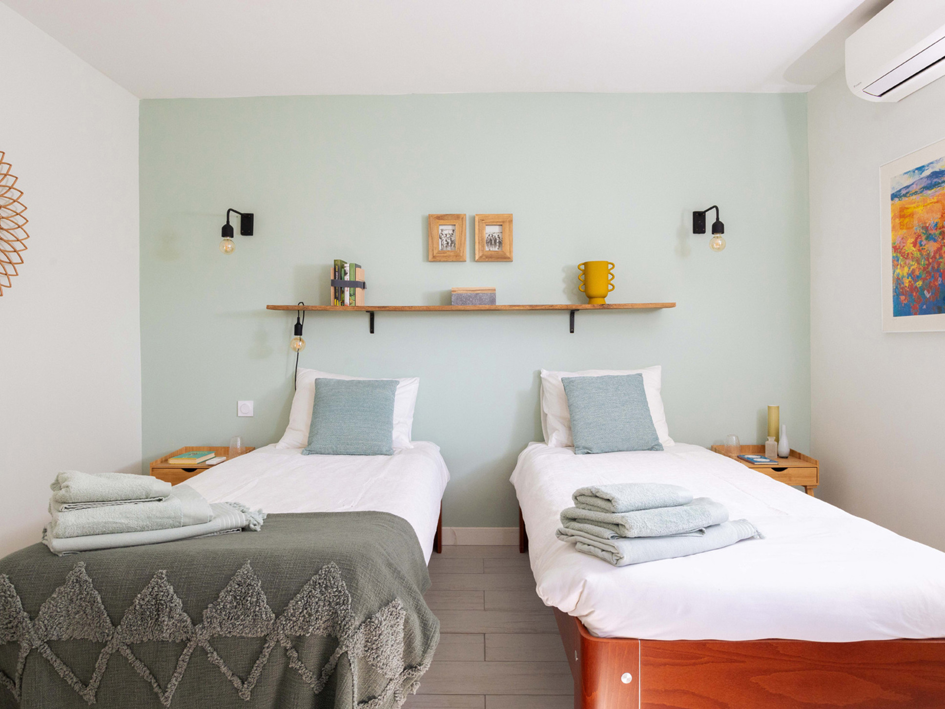 De villa beschikt over 4 slaapkamers en 3 moderne badkamers. Alle slaapkamers zijn voorzien van airconditioning. Op de 1e verdieping bevinden zich 2 slaapkamers en op de beneden verdieping bevinden zich 2 slaapkamers. Een handige indeling als u met 2 gezinnen op vakantie wenst te gaan. Alle slaapkamers bieden een 'terras' of ruimte buiten met zitjes.