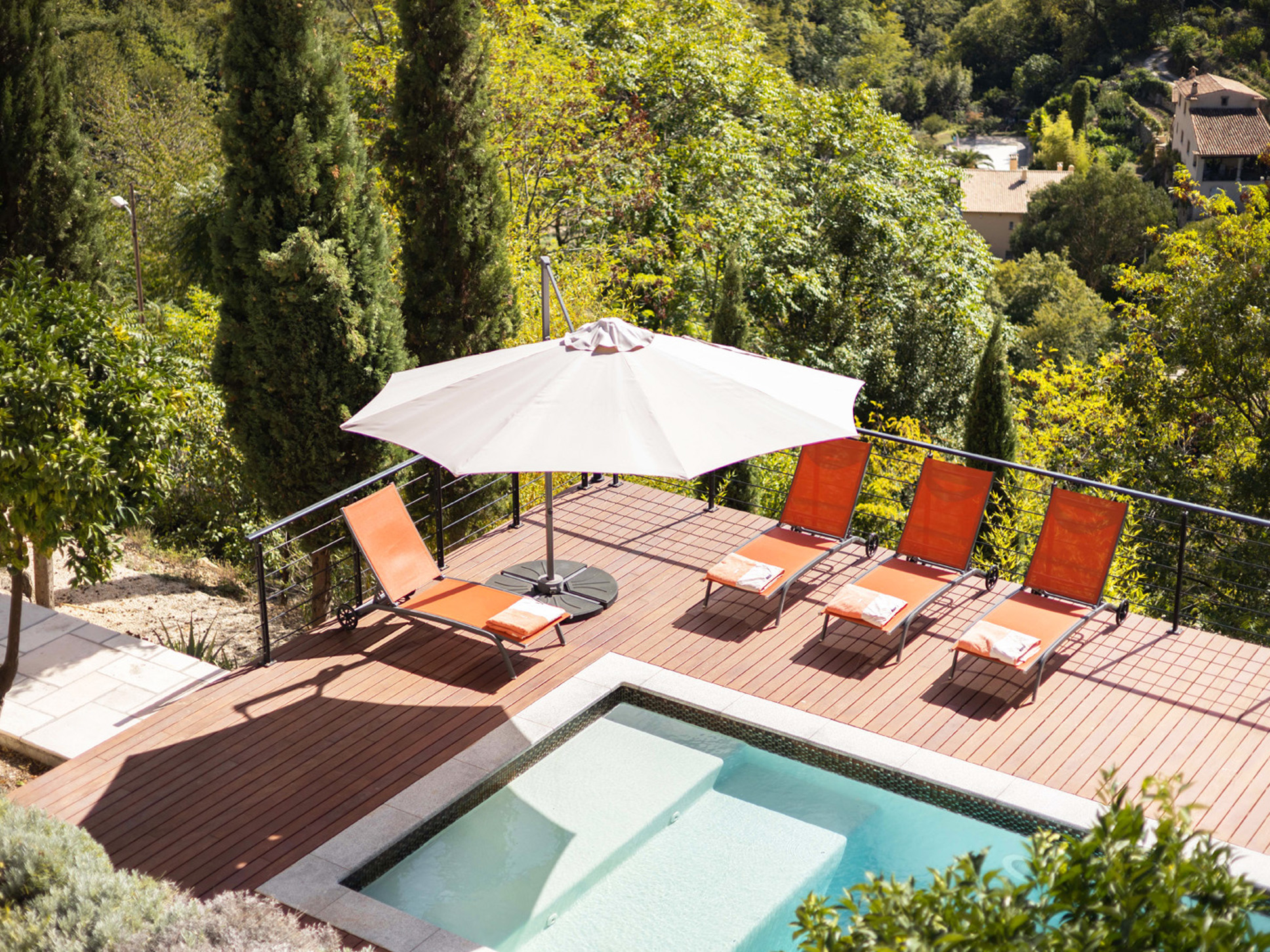 Het uitzicht op het dal van rivier La Cagne naar de Middellandse Zee is indrukwekkend. Uitkijkend over het dal hoort u het geruis van de rivier. De villa biedt buiten alles wat u mag verwachten van een Zuid-Frankrijk villa; royale terrassen, zomerkeuken en een mooi zwembad. Omdat alle slaapkamers over een eigen 'terras' beschikken, biedt de villa ook genoeg gelegenheid om je even terug te trekken en te genieten van de zon, het uitzicht, een boek of misschien een heerlijk glas wijn.
