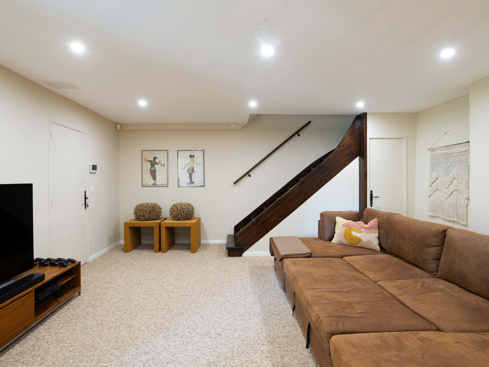 Bij binnenkomst valt het hoge plafond direct op, dit geeft een gevoel van ruimte (250 m2 woonoppervlakte) en luxe. Centraal in de living staat de comfy zithoek. Openslaande deuren richting het deels overdekte terras completeren het vakantiegevoel. Uiteraard ontbreken een TV (Playstation) en Wifi (glasvezel) niet.