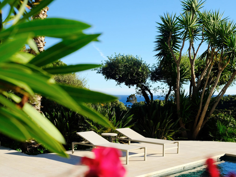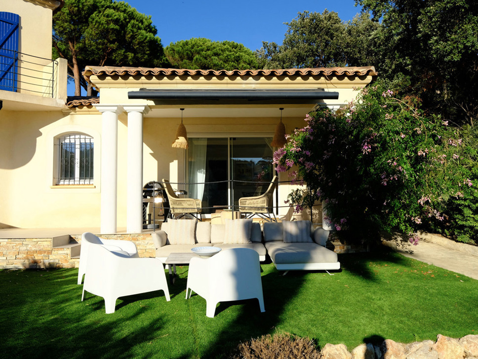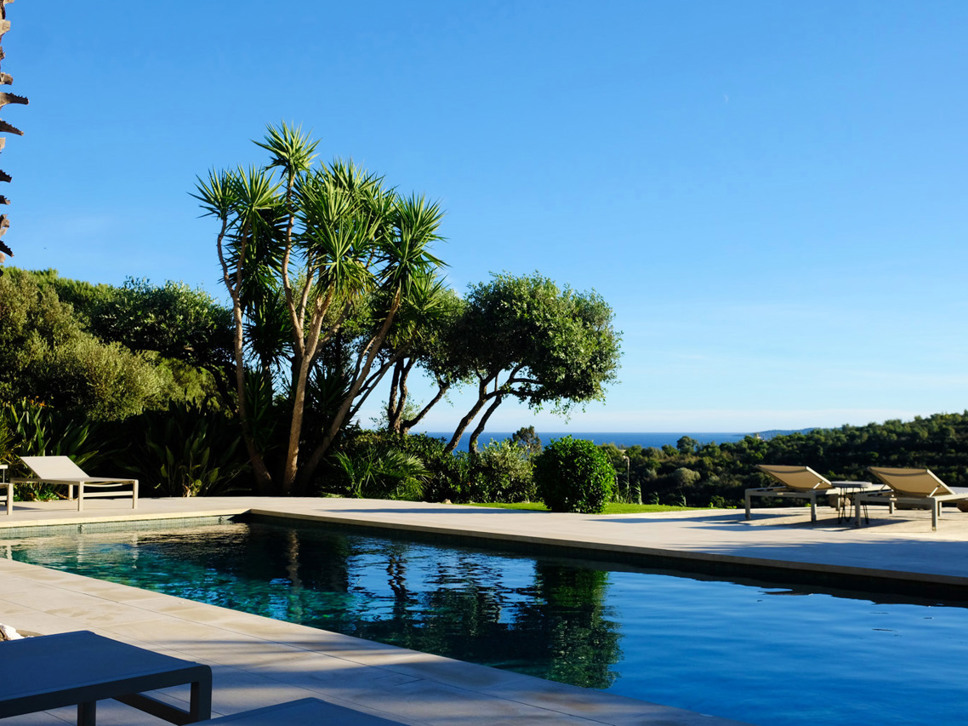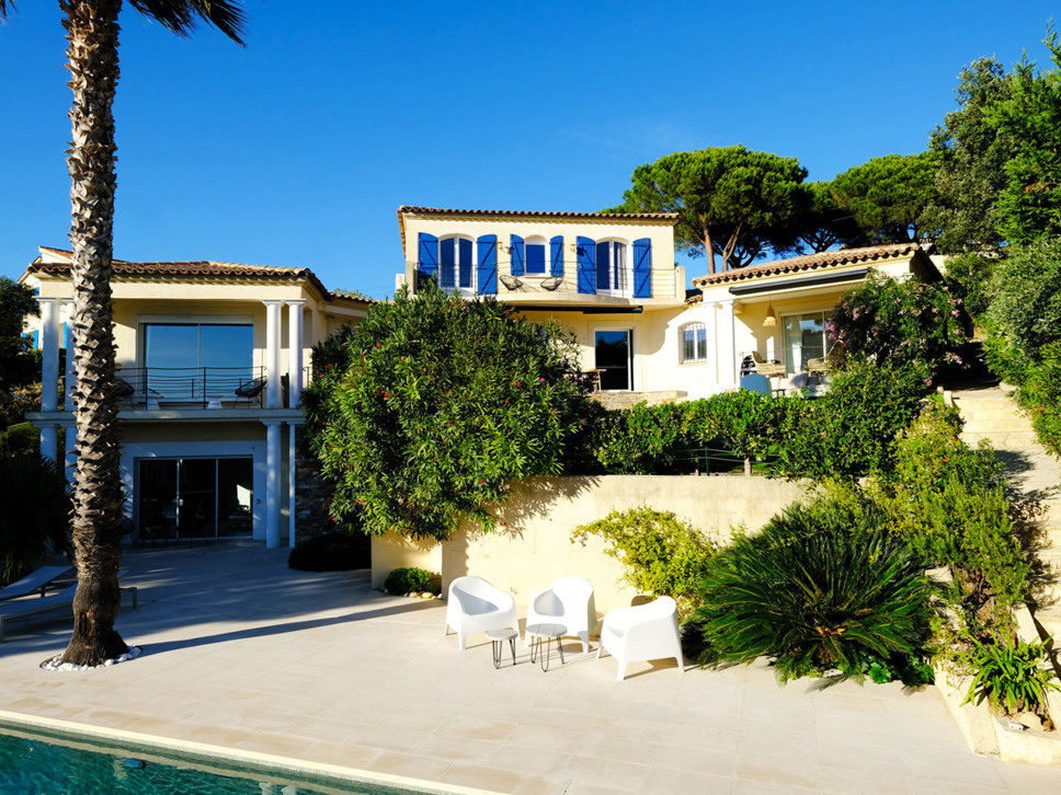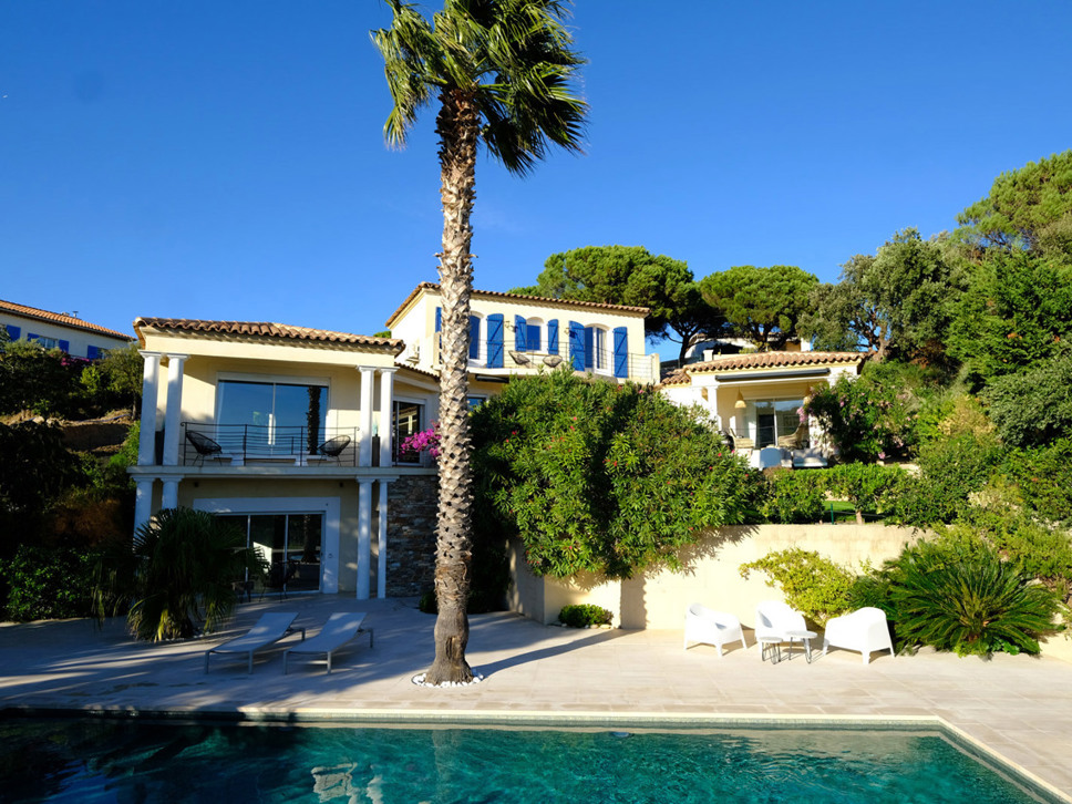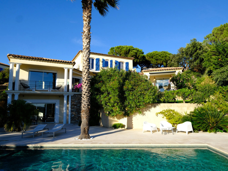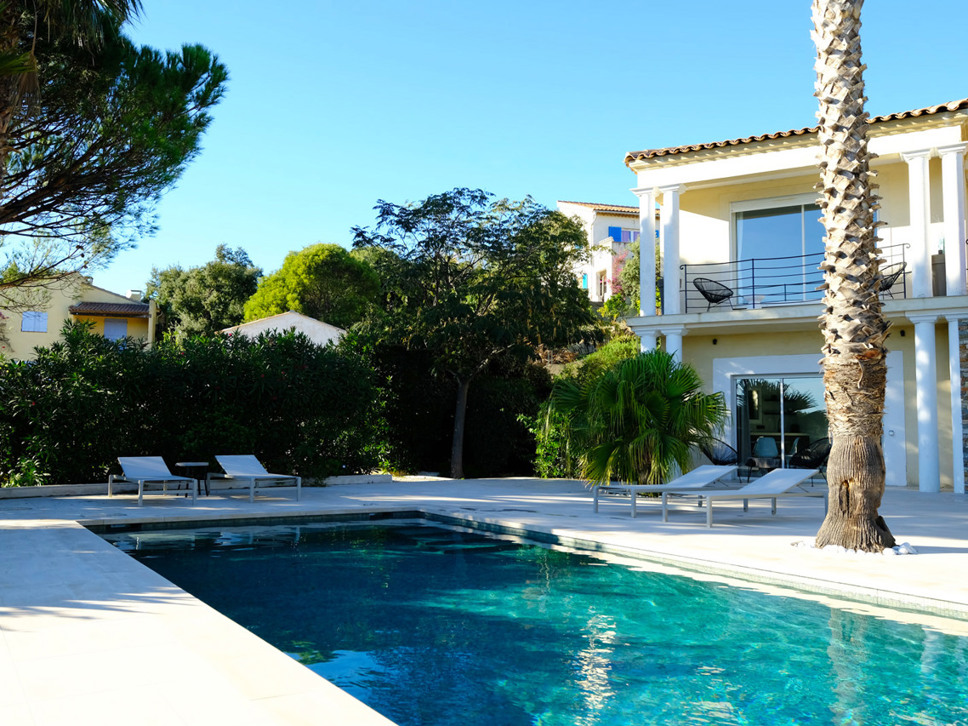 Luxe en royale villa met privé zwembad te Sainte Maxime, Côte d'Azur. Rustig gelegen op korte afstand van het strand. Prachtig zicht Middellandse Zee. Voor 10 personen (plus een baby).