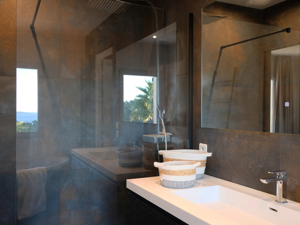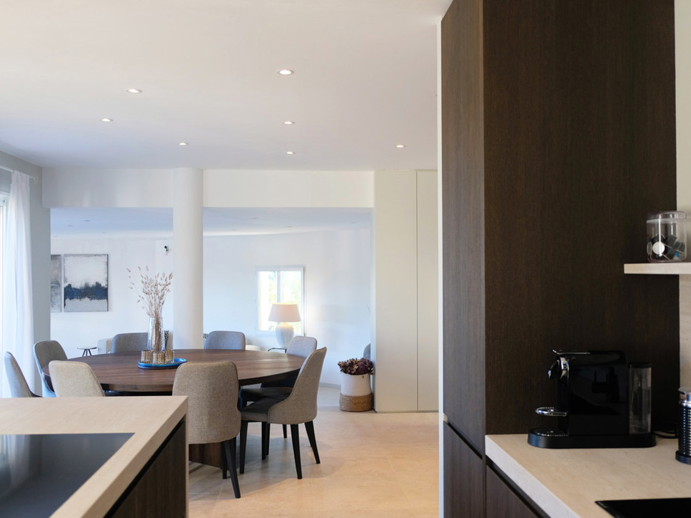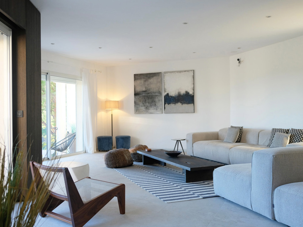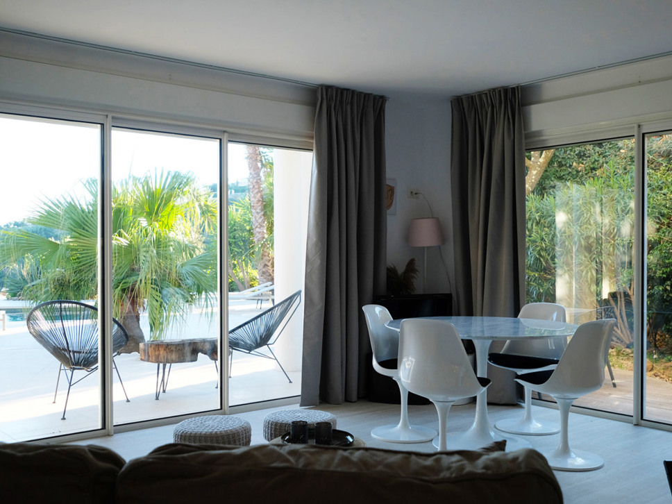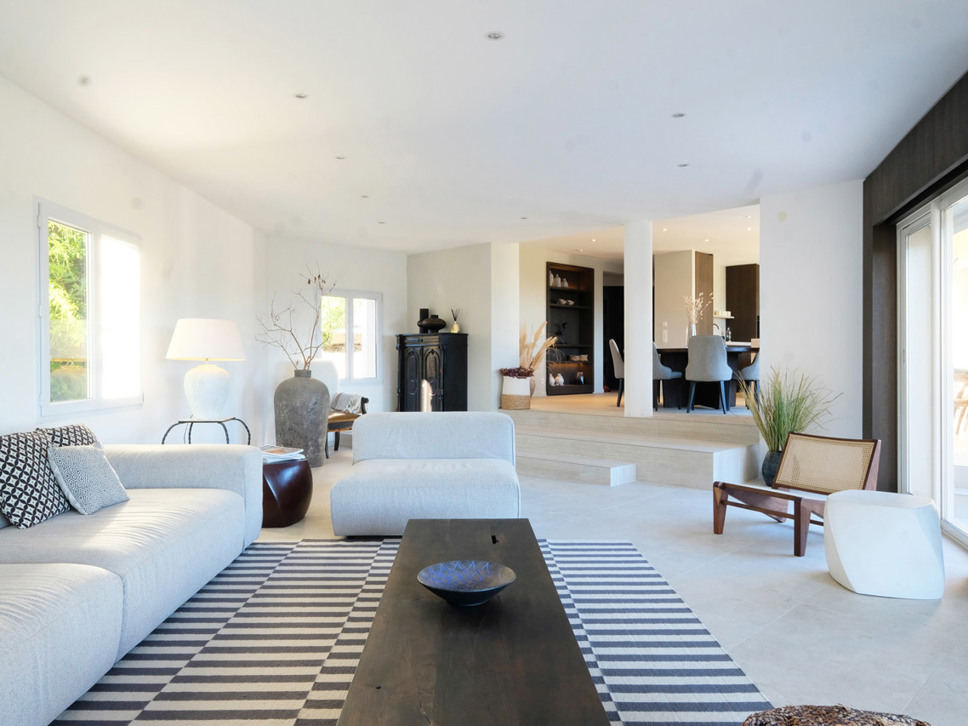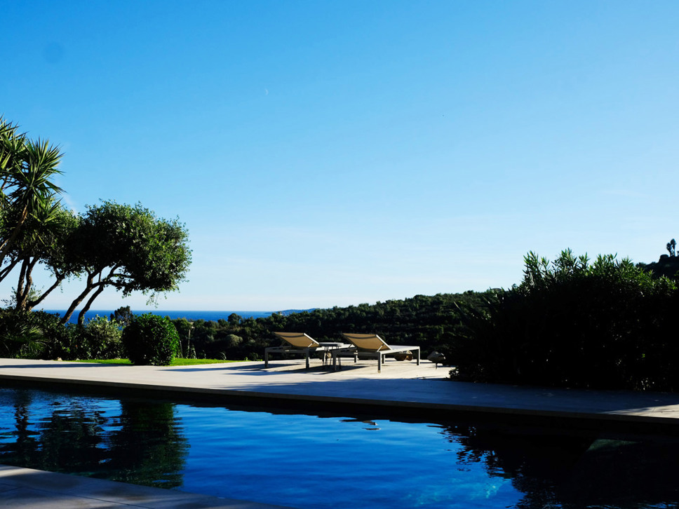 Deze villa bestaat uit drie woonlagen en biedt 250 m² aan woonplezier. De living en de keuken bevinden zich op het middelste niveau. Vanuit de royale living geniet u van een panoramisch uitzicht over de Golf de Saint-Tropez en de Middellandse Zee.