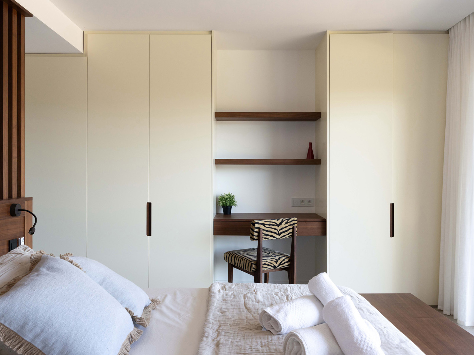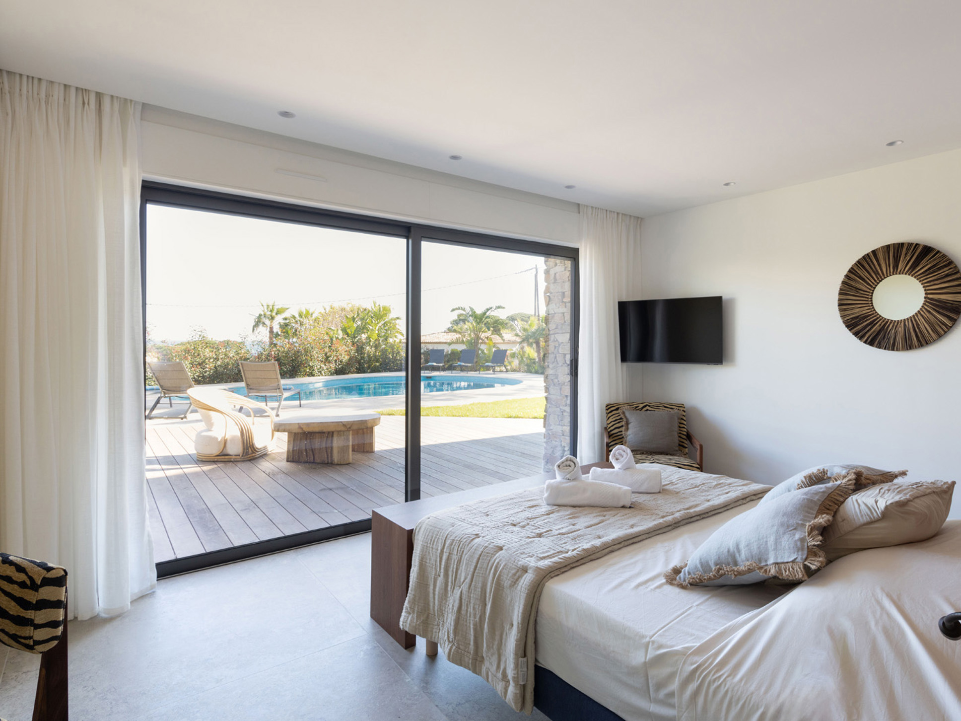 De villa beschikt over 5 luxe slaapkamers en 4 badkamers. Er bevinden zich 2 slaapkamers op de begane grond en 3 op de benedenverdieping. Belangrijk om te vermelden is dat de benedenverdieping een separate entree heeft en dus niet vanaf de begane grond toegankelijk is, wat extra privacy biedt.