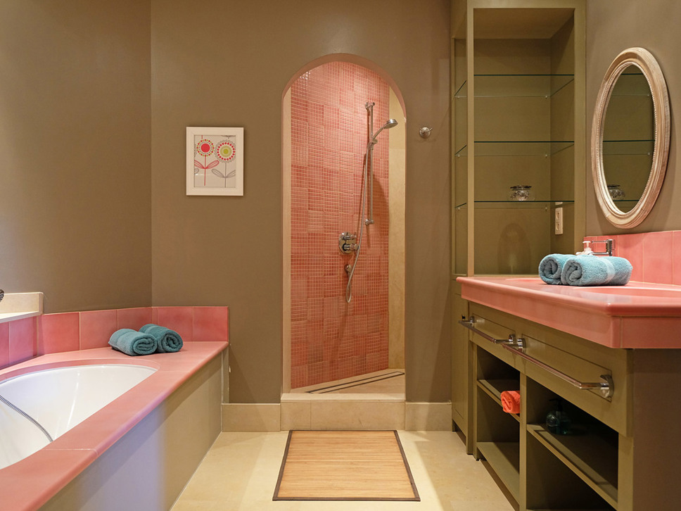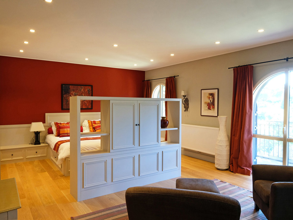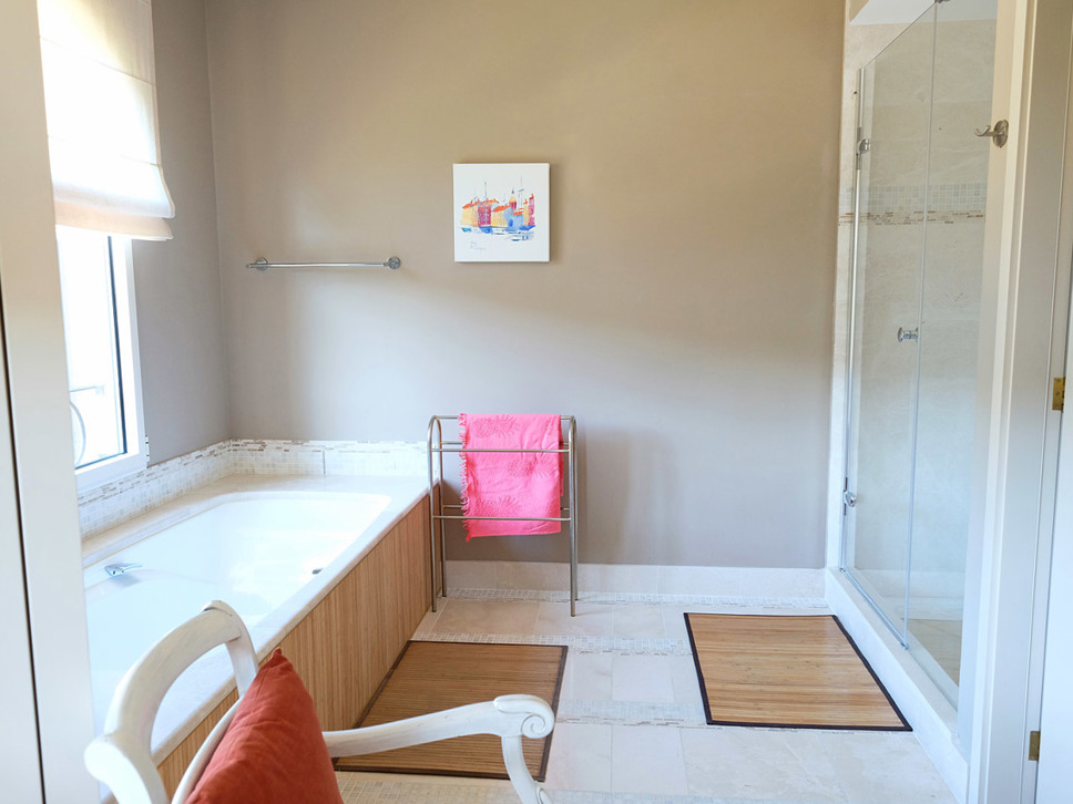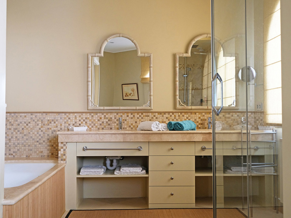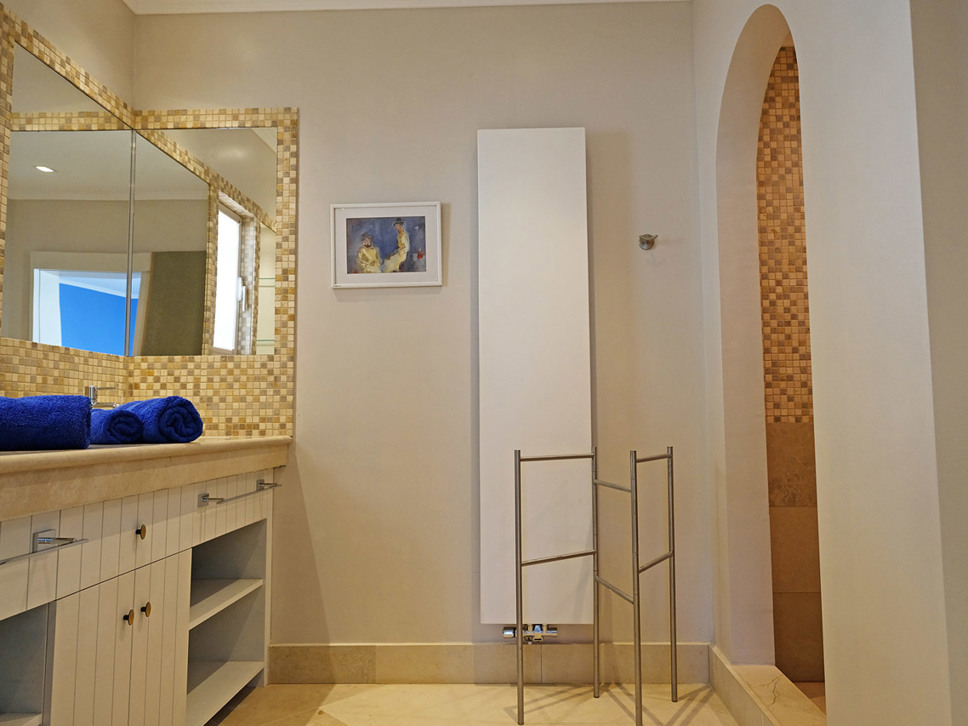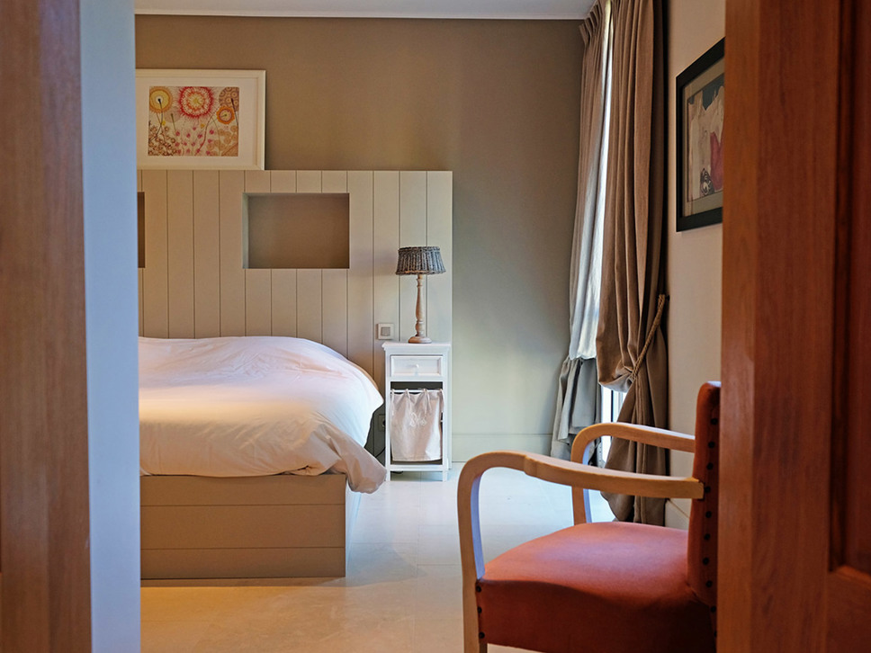 Slaapkamer 1 is de master bedroom (35 m²) met tweepersoonsbed (180x200), zithoek en en-suite badkamer met bad, douche en apart toilet. Slaapkamer 2 biedt een tweepersoonsbed (160x200) met en-suite badkamer (douche en toilet). Slaapkamer 3 biedt twee eenpersoonsbedden (2x90x200) met en-suite badkamer (douche en toilet). Slaapkamer 4 beschikt ook over een tweepersoonsbed (180x200) met en-suite badkamer (bad, douche en toilet).
