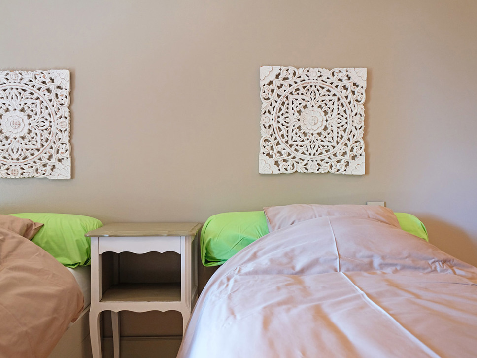Er zijn in totaal 8 royale slaapkamers en 8 badkamers in deze villa. Er zijn 4 slaapkamers op het niveau van de living en 4 slaapkamers een verdieping lager. De slaapkamers op het niveau van de living beschikken over airconditioning. De slaapkamers op de begane grond beschikken over (geruisloze) plafond ventilatoren.