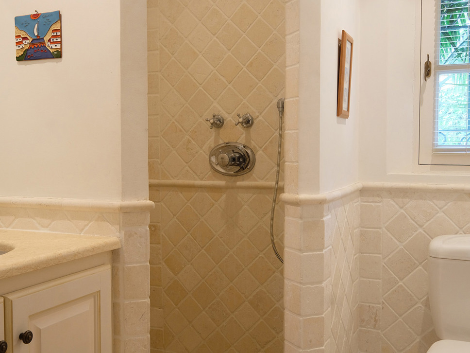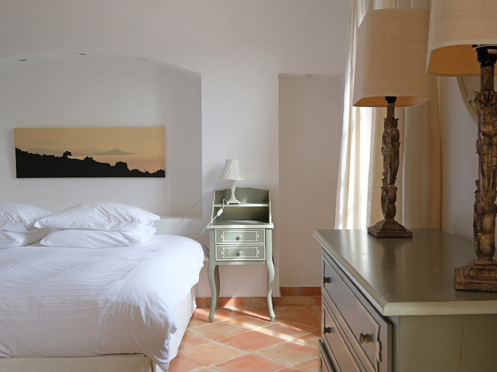 Op de 1e verdieping bevindt zich slaapkamer 4 met en-suite badkamer. Het bed is tweepersoonsbed (2x90x200). Slaapkamer 5 is de ouderslaapkamer, een mooie suite met leuke fauteuils, zeezicht en een luxe en-suite badkamer (ligbad, douche, wastafels en separate WC).