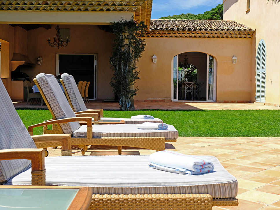 De villa ligt op een bijzonder mooi en goed onderhouden domaine op 5 minuten van zee en strand. Zodra u het terrein oprijdt door de grote elektrische poort ervaart u een gevoel van luxe en comfort. De tuin is zeer goed onderhouden.