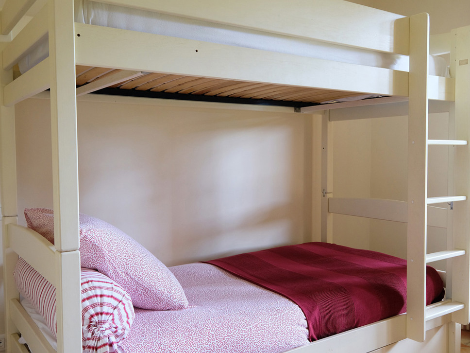 Op de begane grond; slaapkamer 1 biedt een tweepersoonsbed (2x90x200) en en-suite badkamer (douche, wastafel). Ernaast slaapkamer 2 met een tweepersoonsbed (2x90x200) en en-suite badkamer (douche in ligbad, wastafel en separate WC). Slaapkamer 3 tegenover slaapkamer 2 is een kinderkamer me stapelbed (2x90x200). Ook deze kamer heeft een en-suite badkamer met douche, wastafel en separate WC.