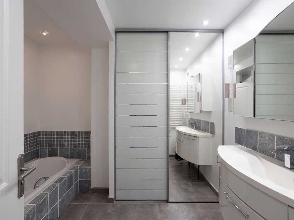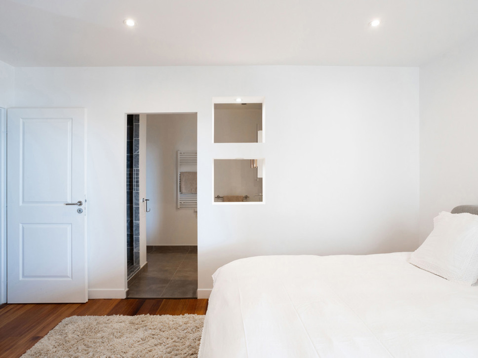 Alle slaapkamers bieden een tweepersoonsbed van 180 x 200. Alle slaapkamers hebben een ensuite badkamer (douche en W.C.) behalve 2 (van de 3) slaapkamers op de benedenverdieping. Deze delen een badkamer (douche, bad en W.C.).