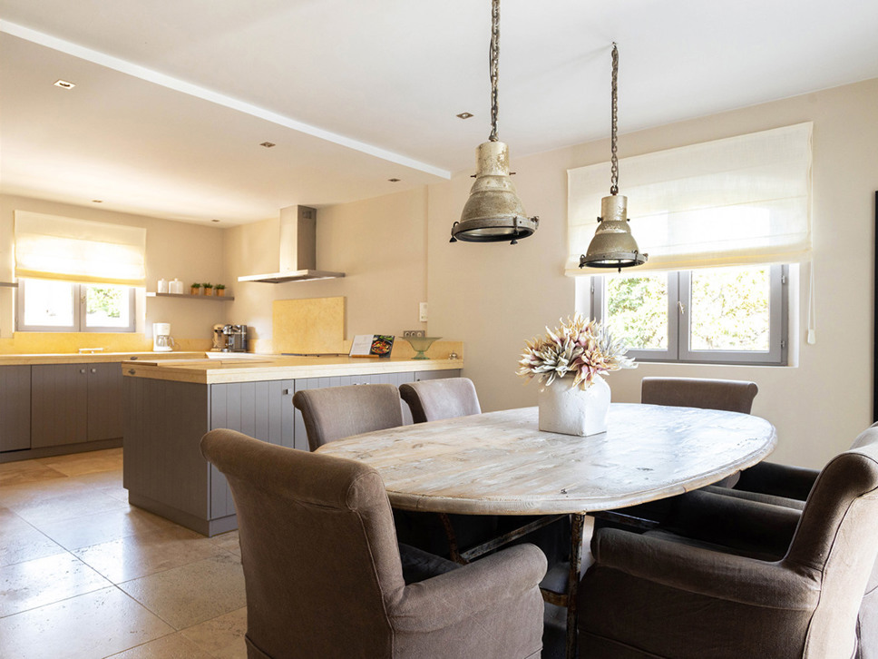 De keuken is royaal en voorzien van alle gewenste voorzieningen, zoals een vaatwasser, koelkast met vriesvak, magnetron, keramische kookplaat, oven en Senseo apparaat zijn aanwezig. Er staat een mooie ovale eettafel met 6 comfy eetkamer stoelen.