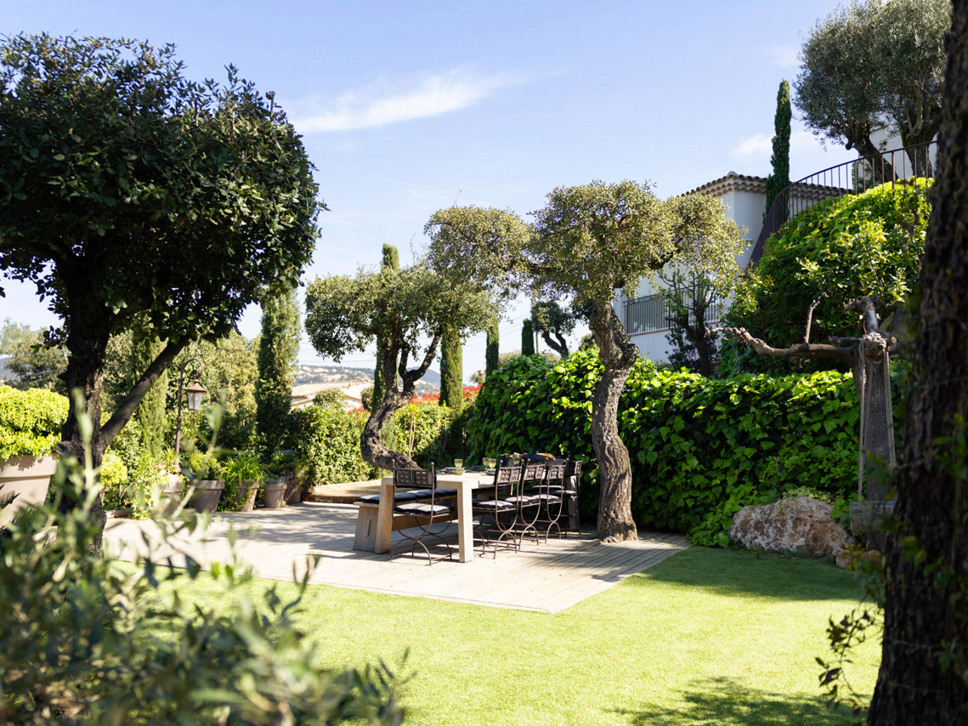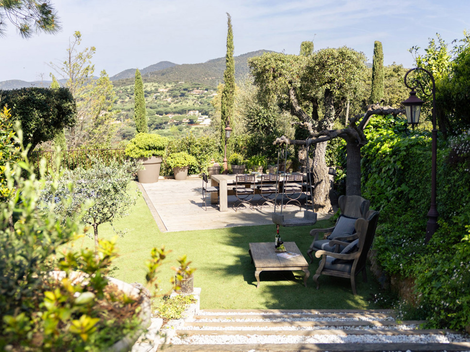De tuin is goed onderhouden met grote palm- en olijfbomen en is in de avond mooi verlicht. Het royale houten terras is ook goed te gebruiken als yoga platform. Er zijn yogamatjes voor u aanwezig.