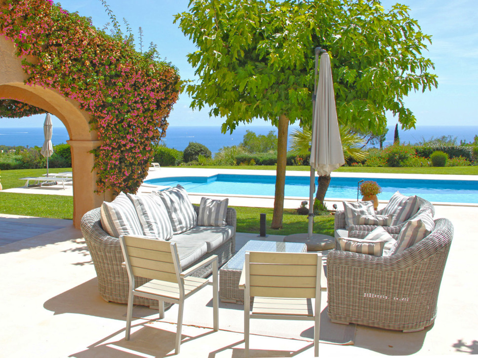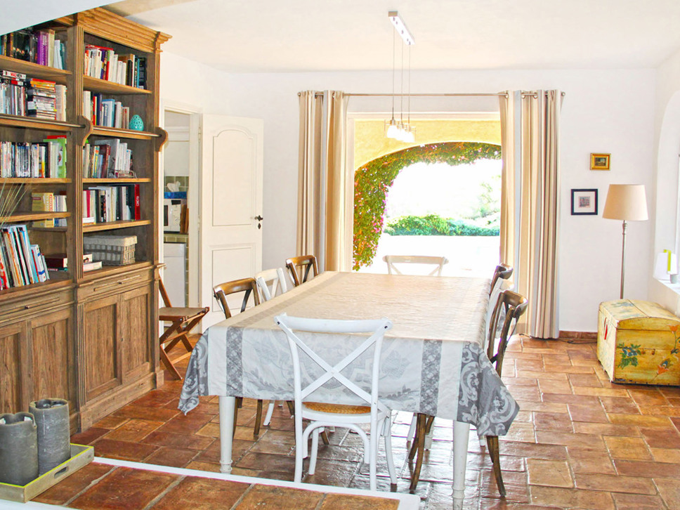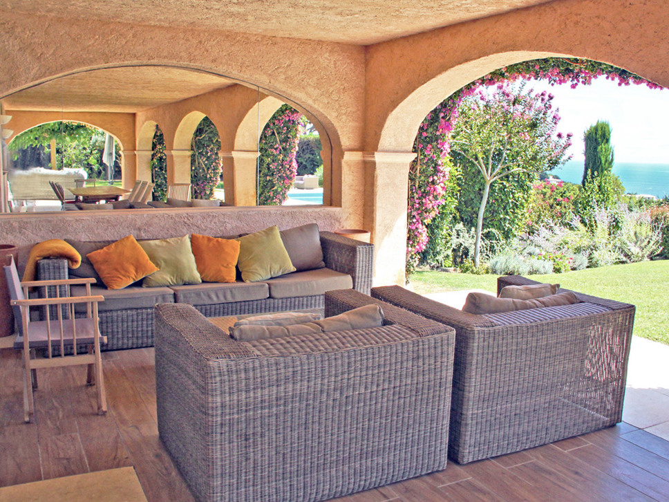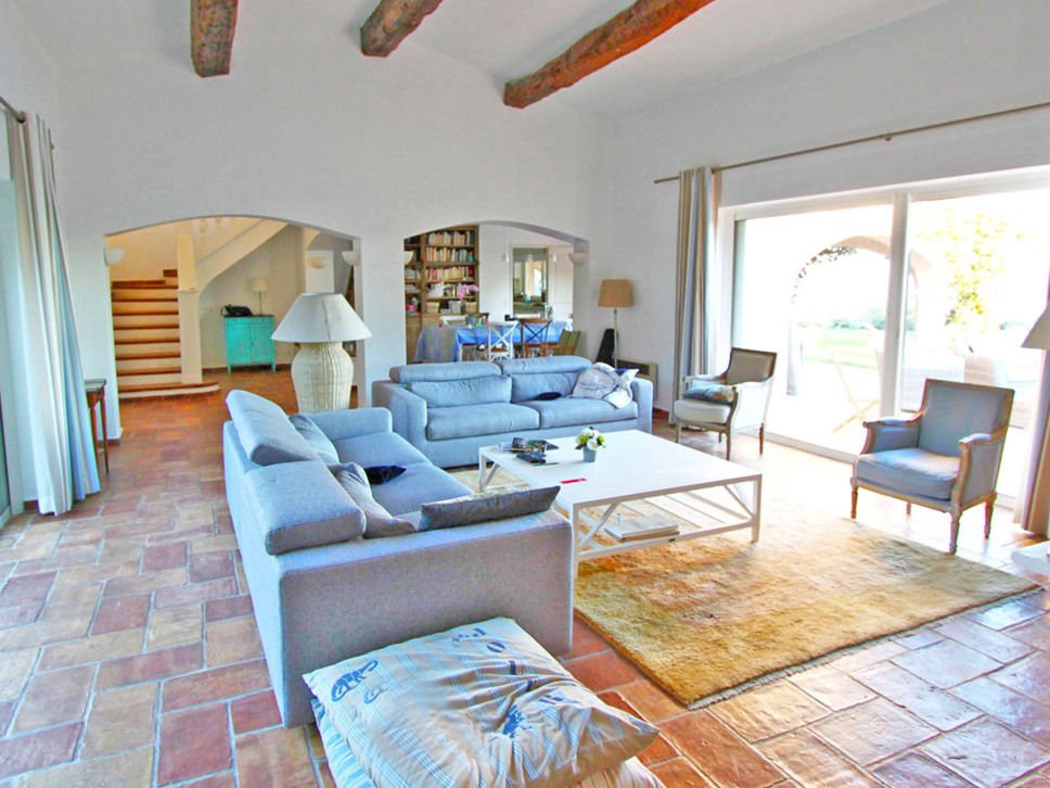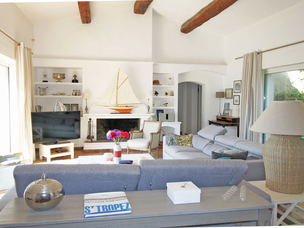 Dit is een heerlijke villa voorzien van alle comfort. De living biedt over de gehele zijde een panoramisch uitzicht over de Golf de Saint Tropez en de Middellandse zee. De living biedt een zeer comfortabele zithoek. Erg fraai zijn de grote schuifdeuren aan beide zijden van de living waardoor binnen en buiten vrijwel in elkaar overvloeien.
