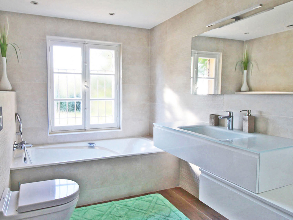 Er zijn in totaal 5 slaapkamers die alle zijn voorzien van airconditioning en een en-suite badkamer. Er zijn 4 slaapkamer en 4 badkamers op de begane grond. Er is 1 royale (ouder) slaapkamer met en-suite badkamer op 1e verdieping.