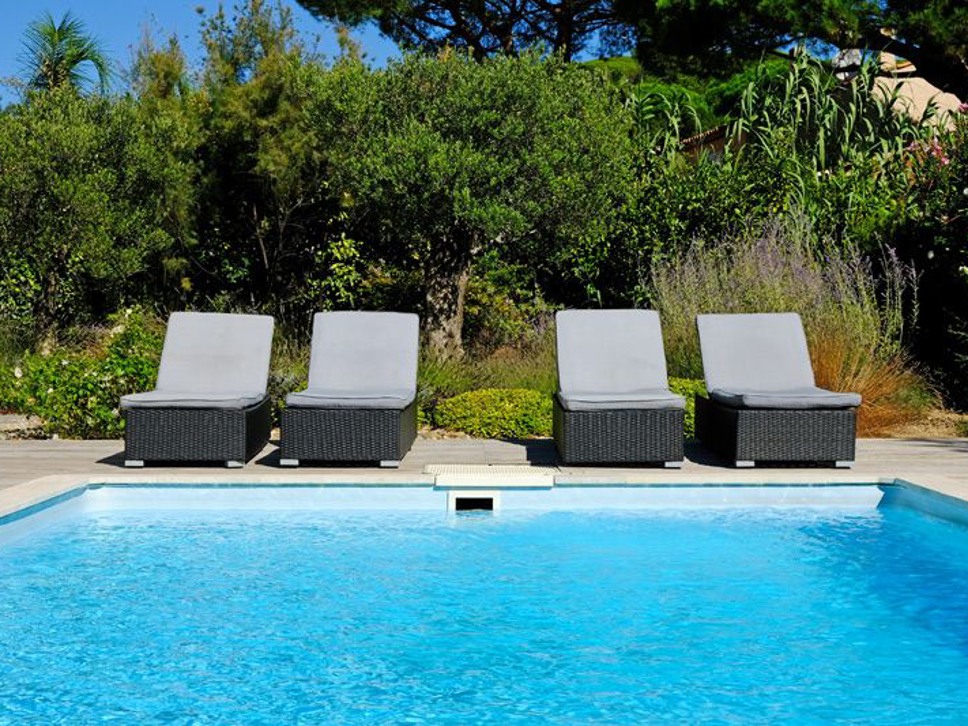 Het zwembad is rechthoekig 9 x 4 m. en is voorzien van ligbedden en parasols. De zonligging is dusdanig dat u de gehele dag desgewenst kunt genieten van de zon.