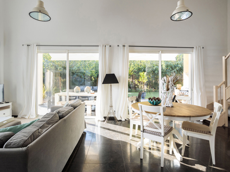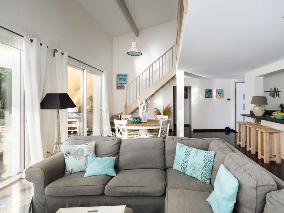 De woning heeft een moderne open living die kleurrijk en gezellig is ingericht. Een grote comfortabele zithoek staat centraal in de ruime en lichte living. In de TV hoek staat een LCD TV met NL en BE kanalen. Ook met DVD-speler. Wifi ontbreekt niet. De moderne open keuken is compleet ingericht en beschikt o.a. over een vaatwasser, oven, hoge koelkast met apart diepvriesvak, magnetron, kookplaat, koffiezet en een waterkoker. In de bijkeuken staat de wasmachine en droger. De eettafel in de living biedt plaats voor 6 personen. De gehele woning is voorzien van airconditioning.