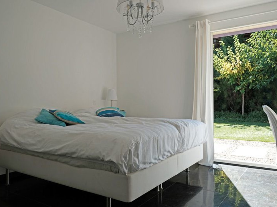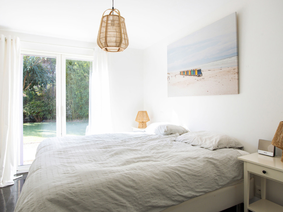 Er zijn 3 slaapkamers en 2 badkamers. Alle slaapkamers zijn voorzien van airconditioning en gelegen op de begane grond. Slaapkamer 1, de master bedroom is gelegen aan de tuinzijde van de woning. Openslaande deuren bieden toegang tot de groene tuin. Het bed is een comfortabele boxspring (2x90x200). De badkamer is en-suite (douche, wastafel en W.C.).