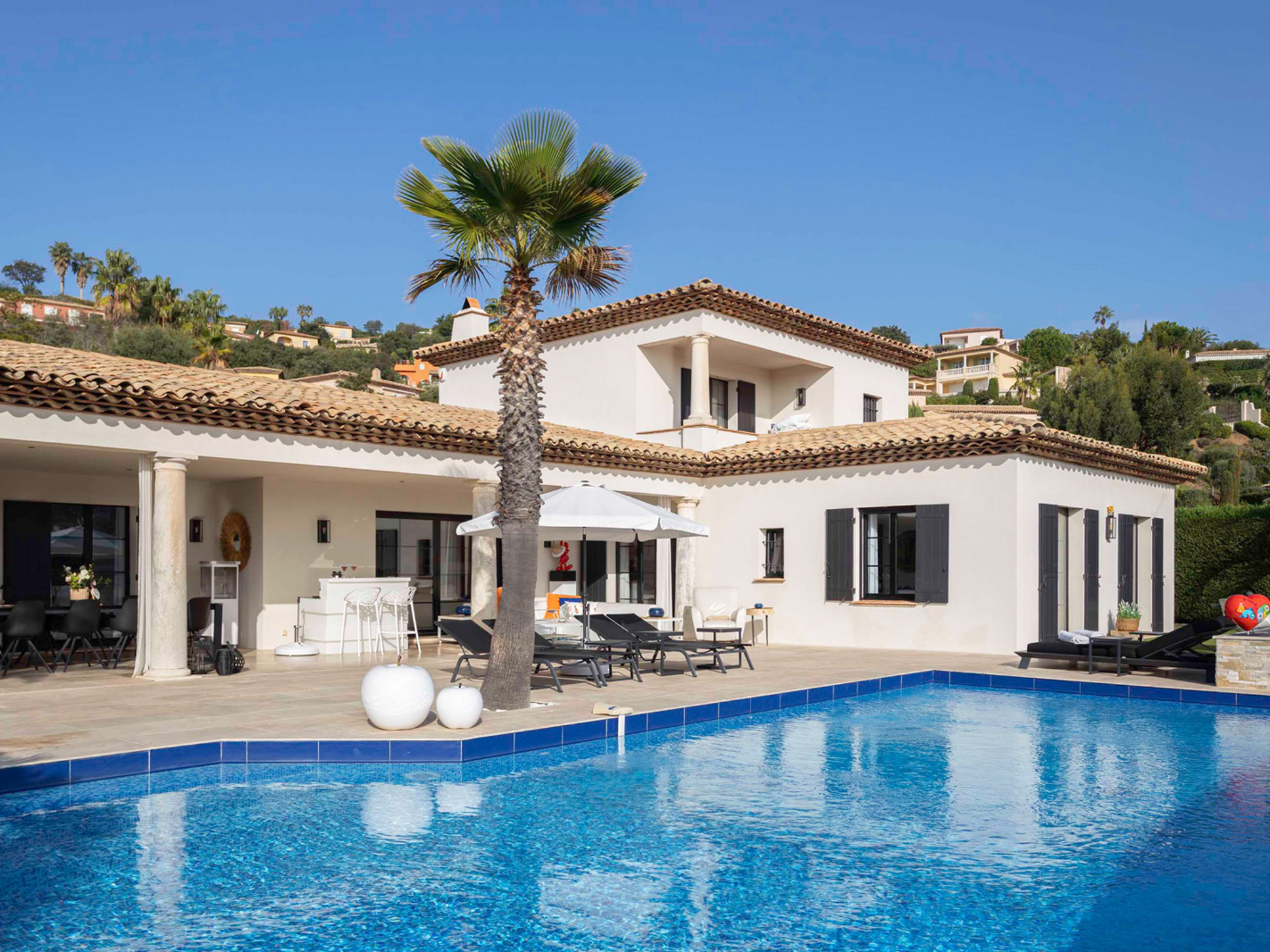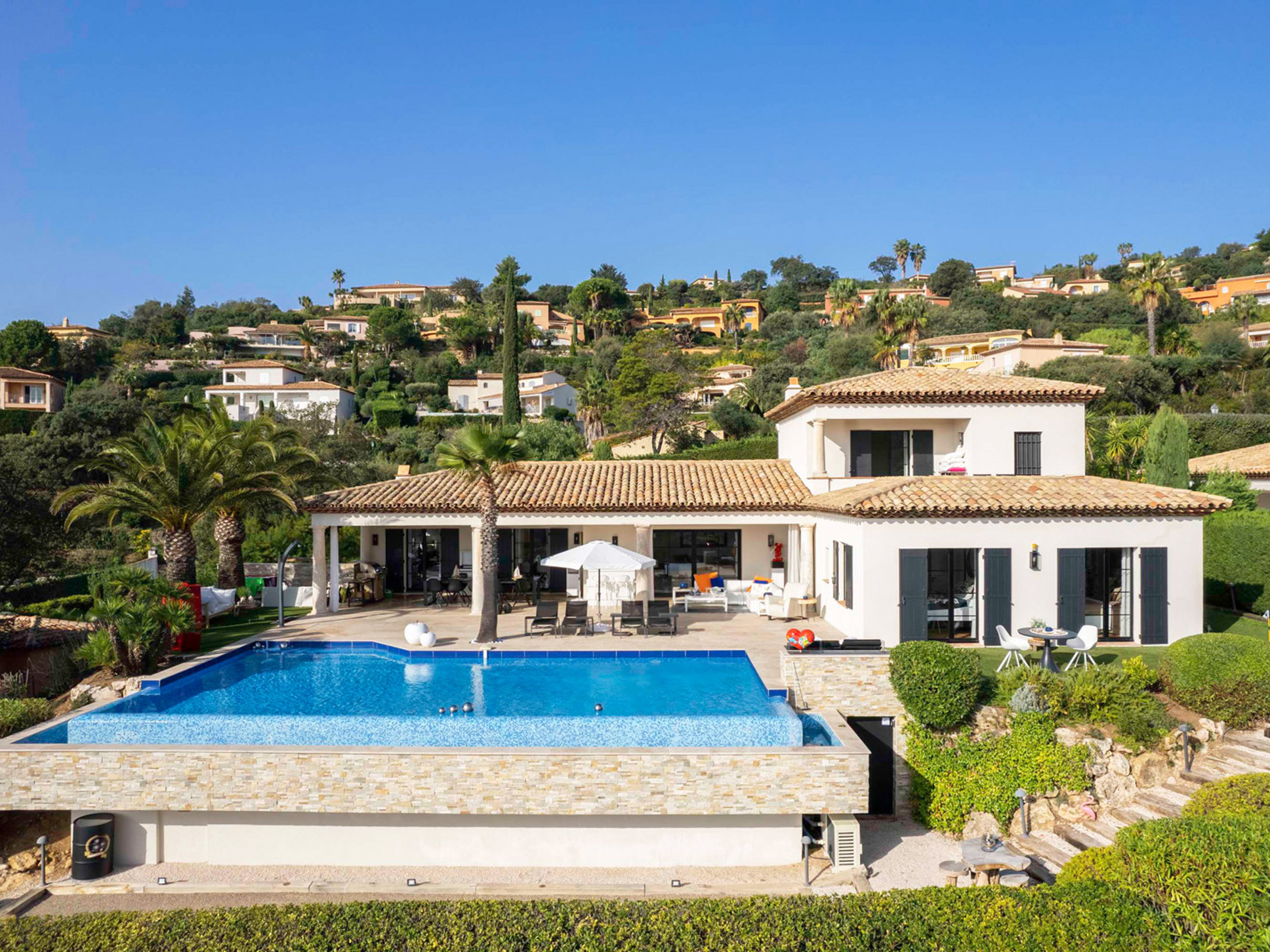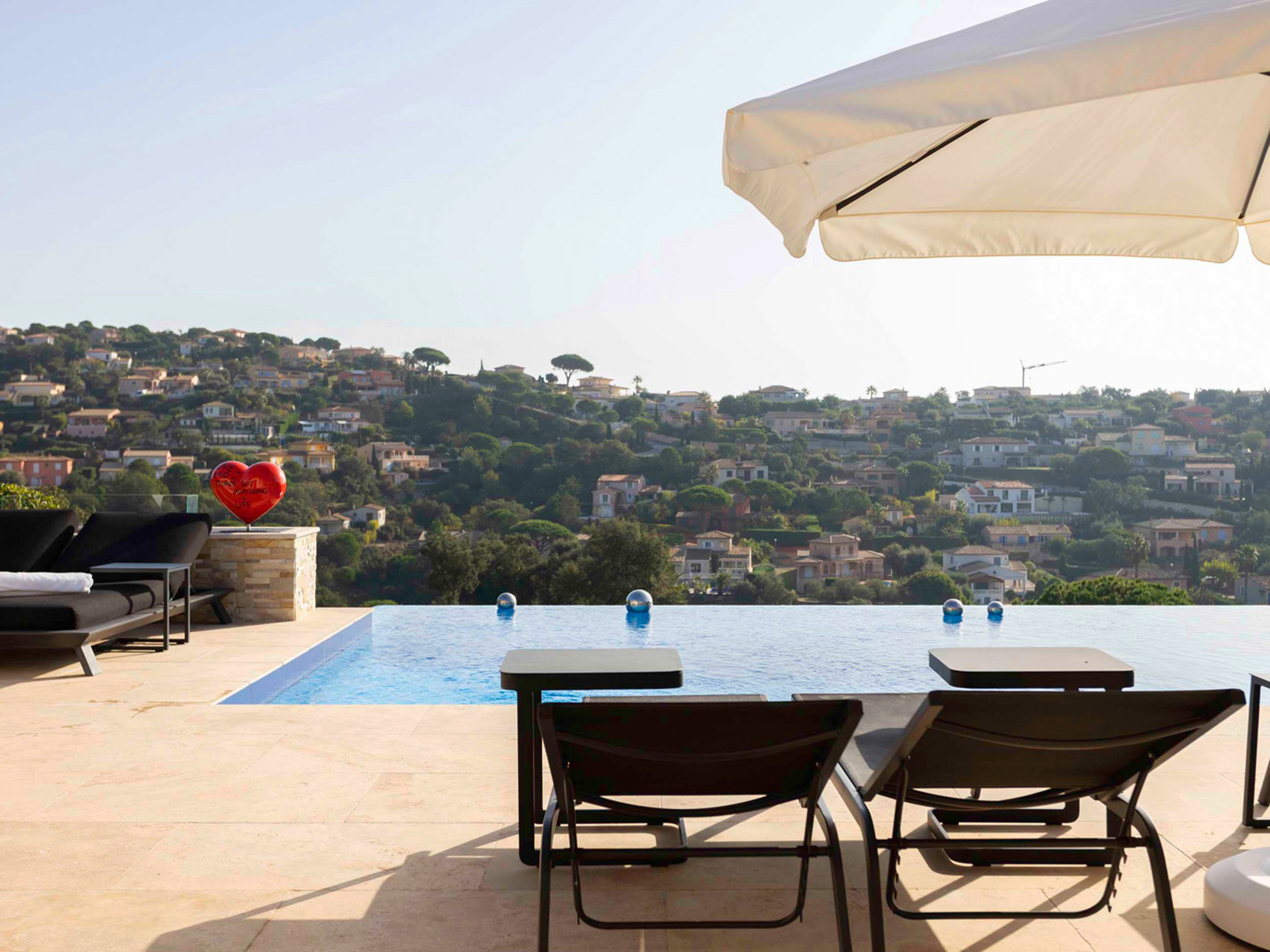 Luxe villa met privé zwembad te Sainte Maxime, Côte d'Azur. 100% airconditioning. Eigentijds interieur binnen en mooi design tuinmeubilair buiten. Uitzicht op de Golfbaan van Sainte Maxime. De villa is geschikt voor 8 - 10 personen.