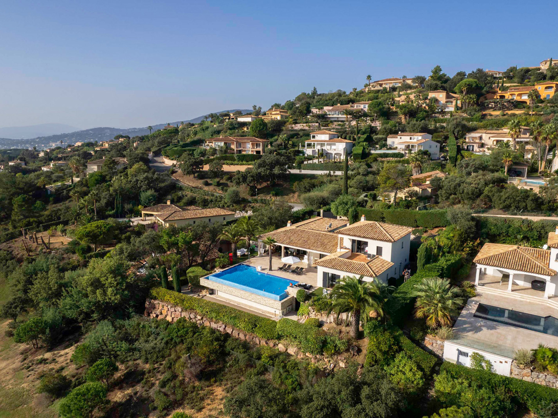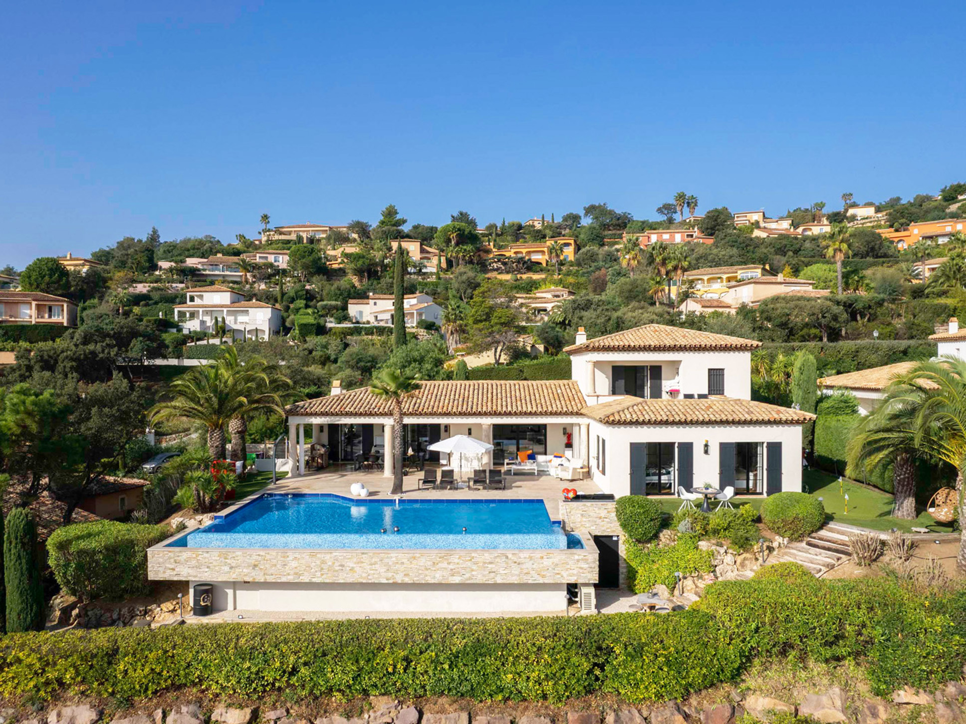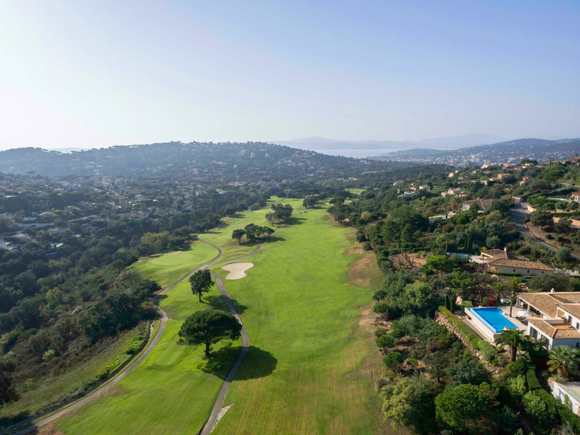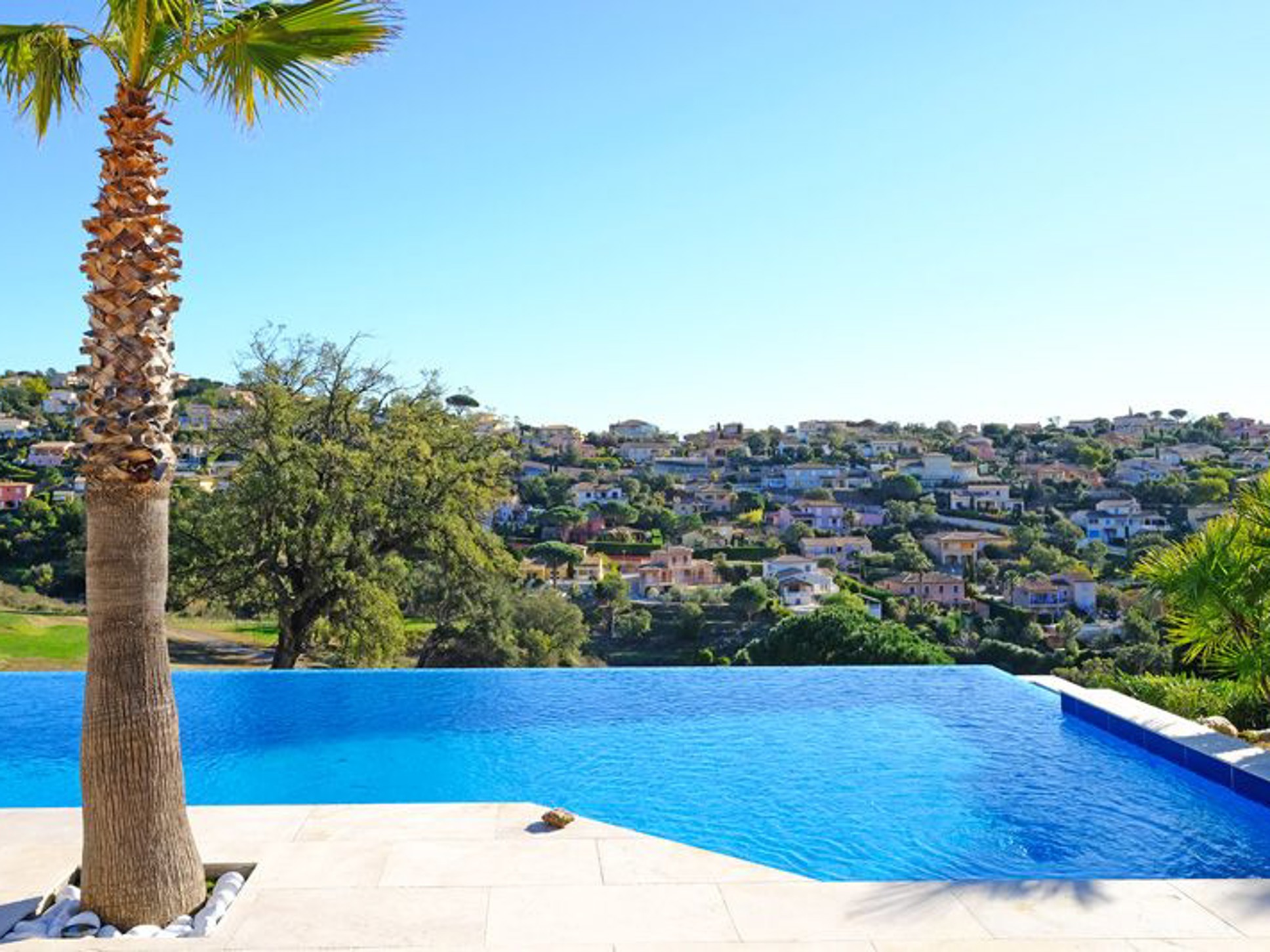 Luxe villa met privé zwembad te Sainte Maxime, Côte d'Azur. 100% airconditioning. Eigentijds interieur binnen en mooi design tuinmeubilair buiten. Uitzicht op de Golfbaan van Sainte Maxime. De villa is geschikt voor 8 - 10 personen.