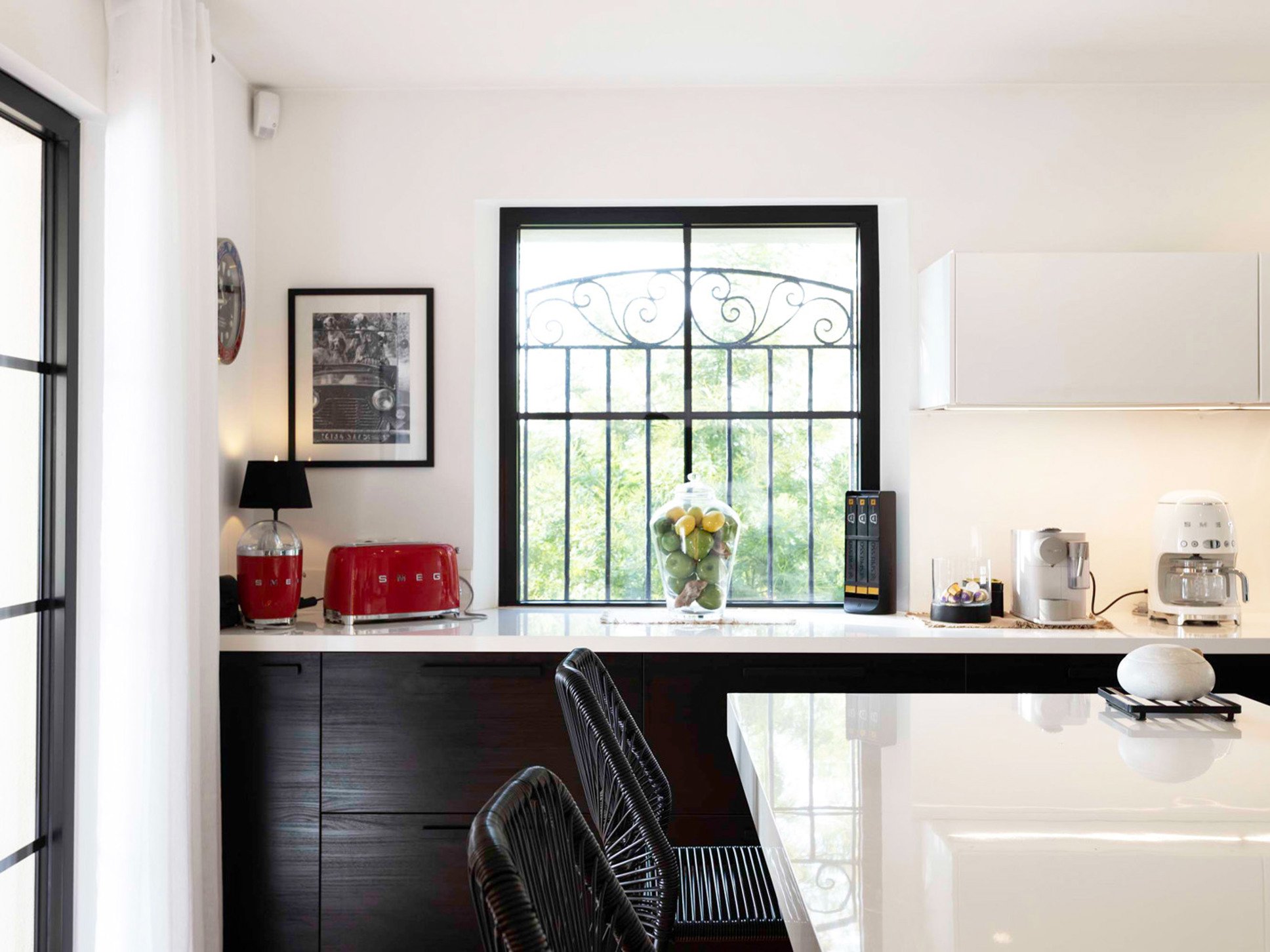 Een LCD satelliet-TV met DVD ontbreekt niet. De keuken bevindt zich in het verlengde van de living en eetgedeelte. De moderne keuken is zeer compleet o.a. met een Amerikaanse koelkast met ijsblokjes, combi-oven en een espresso-apparaat. De gehele villa is voorzien van airconditioning.