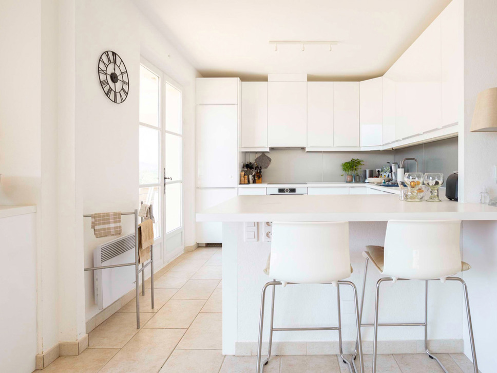 De open keuken is compleet ingericht en voorzien van o.a. een koel-/vriescombinatie, keramische kookplaat, vaatwasser, hete luchtoven en Nespresso-apparaat.