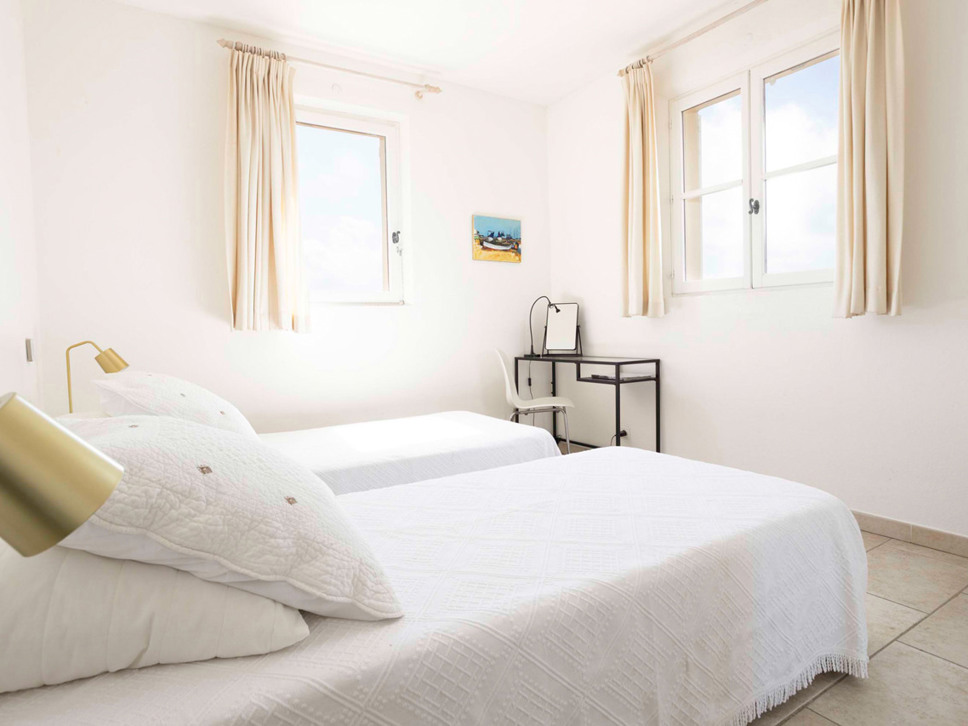 Slaapkamers 2, 3 en 4 bevinden zich op de eerste verdieping. Alle drie bieden ze uitzicht op zee. Op zowel slaapkamer 2 als 3 staan 2 eenpersoonsbedden (2x90x200). Op slaapkamer 4 staan 2 eenpersoonsbedden van 2x80x200. Deze slaapkamers delen de badkamer op de eerste verdieping (bad, aparte douche en apart toilet).