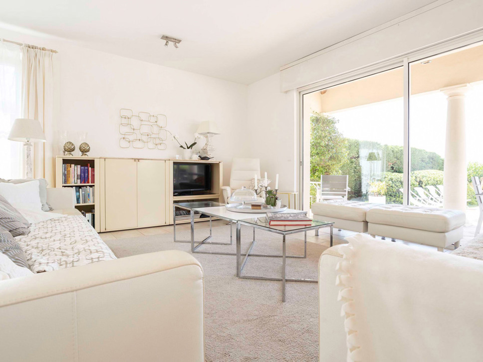 Vanuit de woonkamer, de eetkamer, de keuken en de masterbedroom stapt u zo het terras op dat over de hele lengte van het huis ligt.