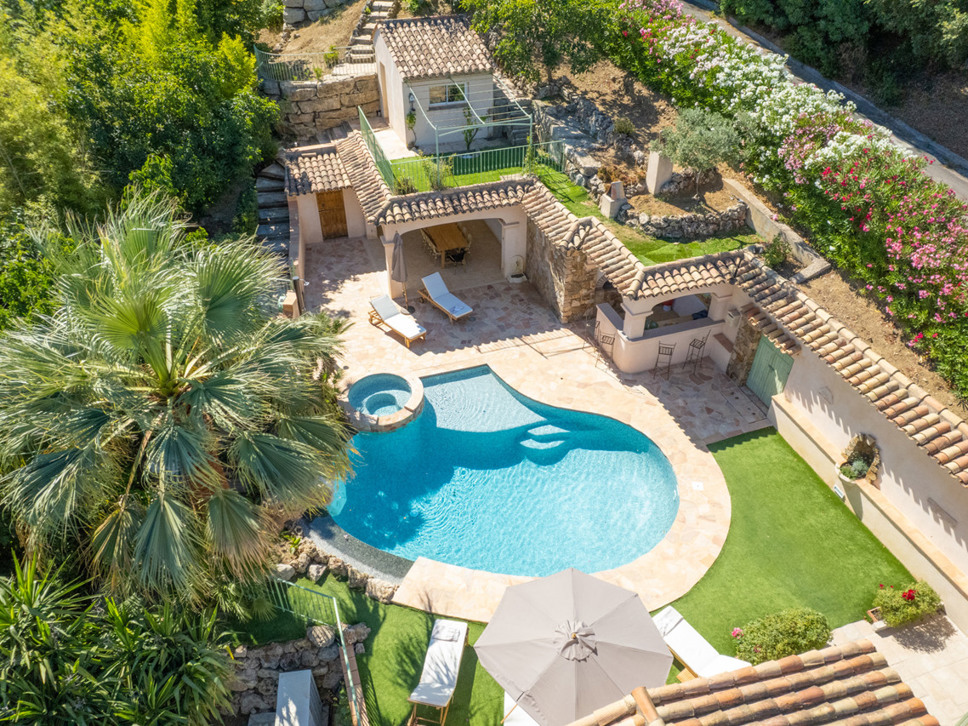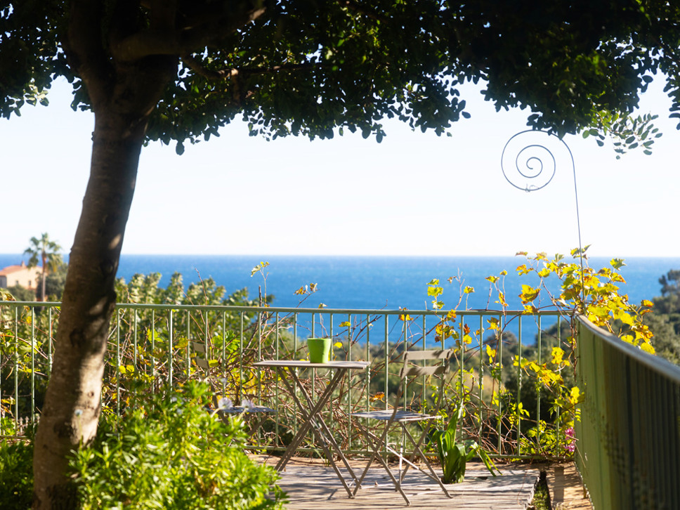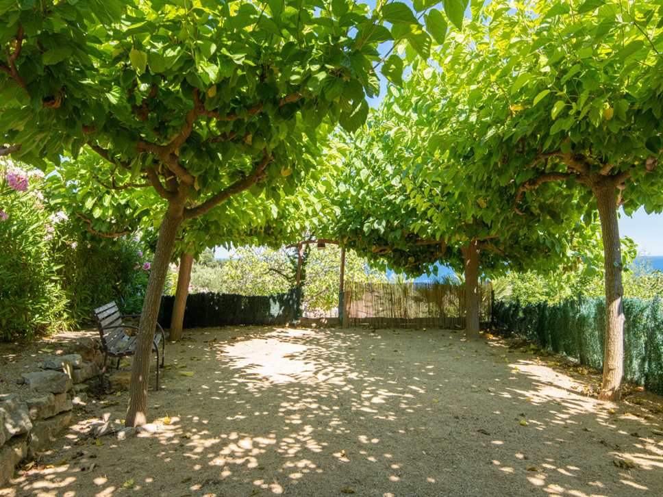 De villa beschikt ook over een jeu-de-boulesbaan op een met bomen overdekt terras met uitzicht op zee.
