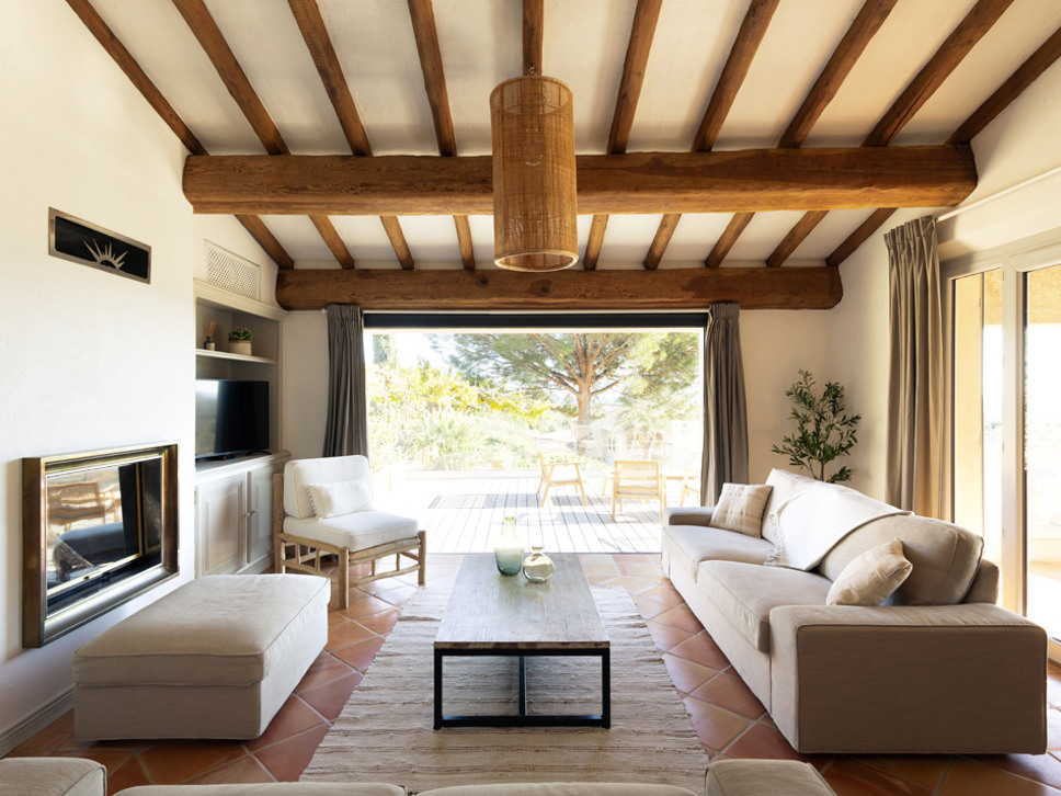 Het mooie strand Plage La Nartelle met haar beachclubs zoals Barco Beach en La Voile ligt op korte afstand van de villa.