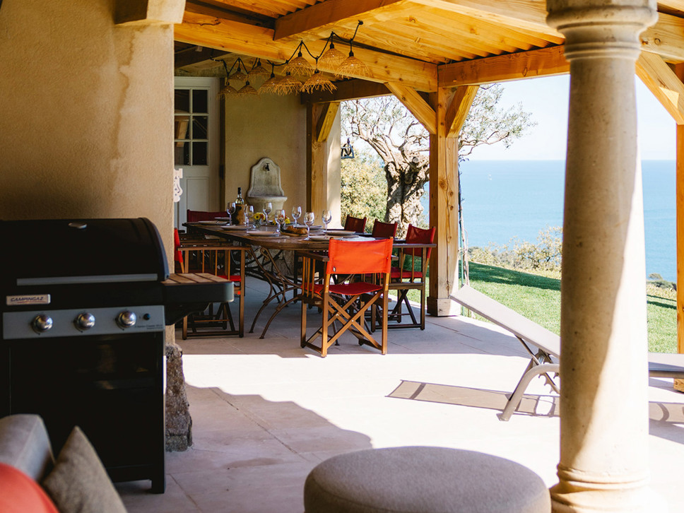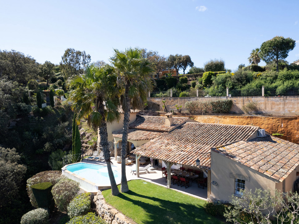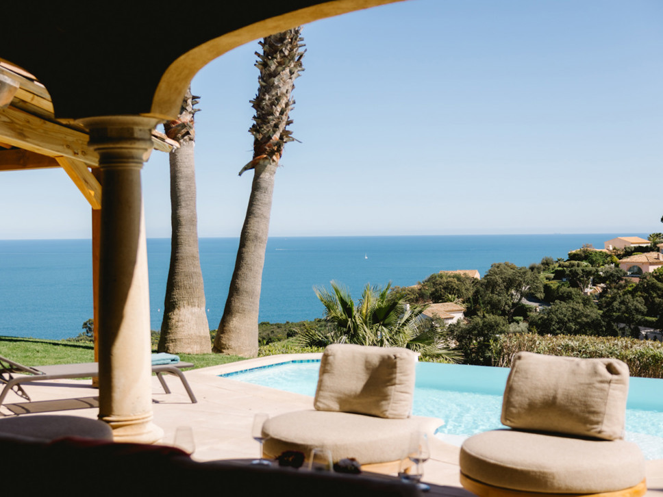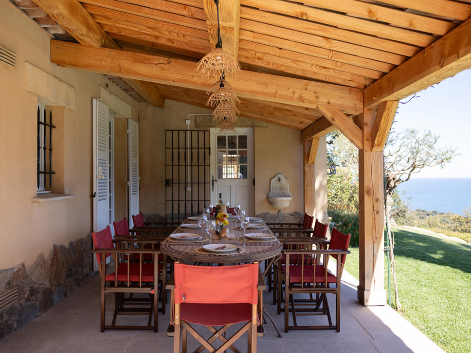 Het uitzicht is indrukwekkend, over de Middellandse zee, alsook naar de haven van Les Issambres. In het verlengde van het terras bevindt zicht een kleine tuin; een grasveldje en enkele borders. Erg leuk is ook de aanwezigheid van een jeu de boules baan gelegen op een lager niveau in de tuin.