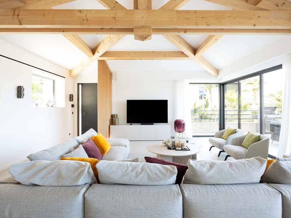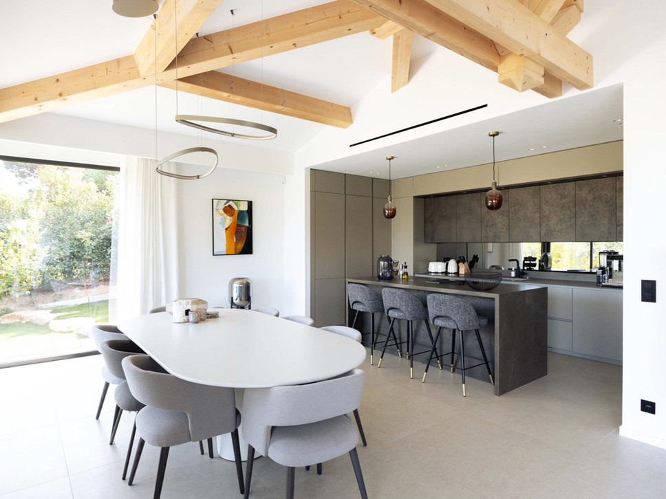 De moderne keuken is royaal en zeer compleet ingericht. Vanuit living en de eetkamer geniet u van het frontale zicht op de Middellandse Zee en loopt u zo het royale zonneterras op. De living en eetkamer zijn ook voorzien van airconditioning.