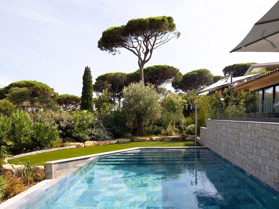 Exclusieve villa met privé zwembad te Sainte Maxime, Côte d'Azur. Royale en vooral luxe suites, design meubilair en met privé gym. Op korte afstand van het strand en de boulevard. De villa is geschikt voor 8 volwassenen en 2 kinderen.