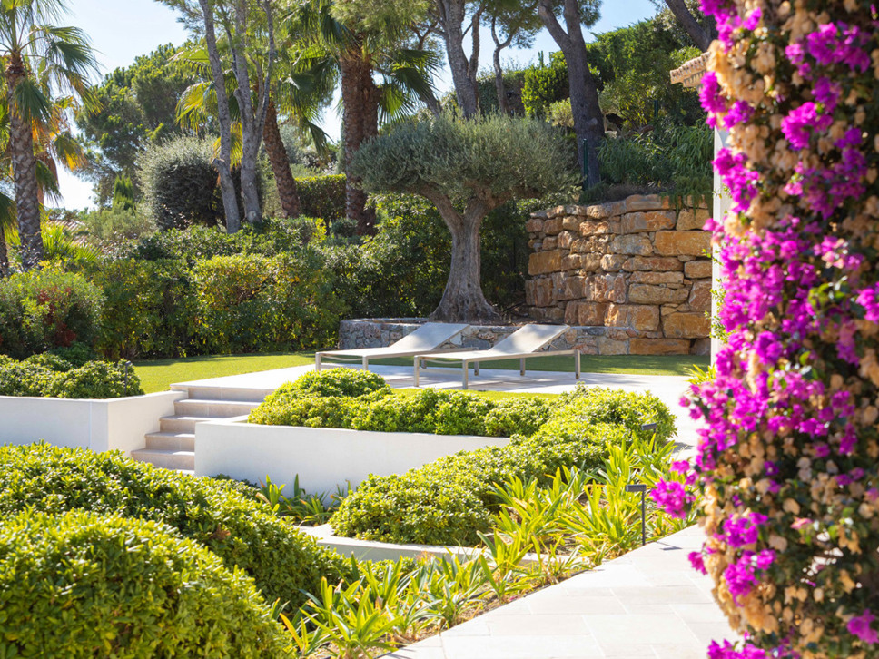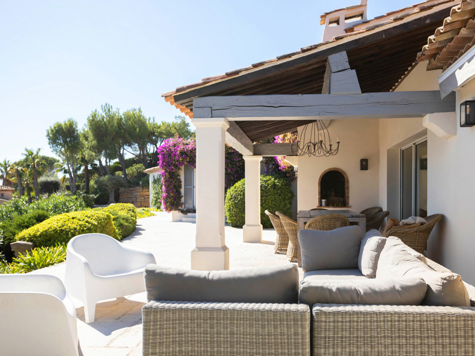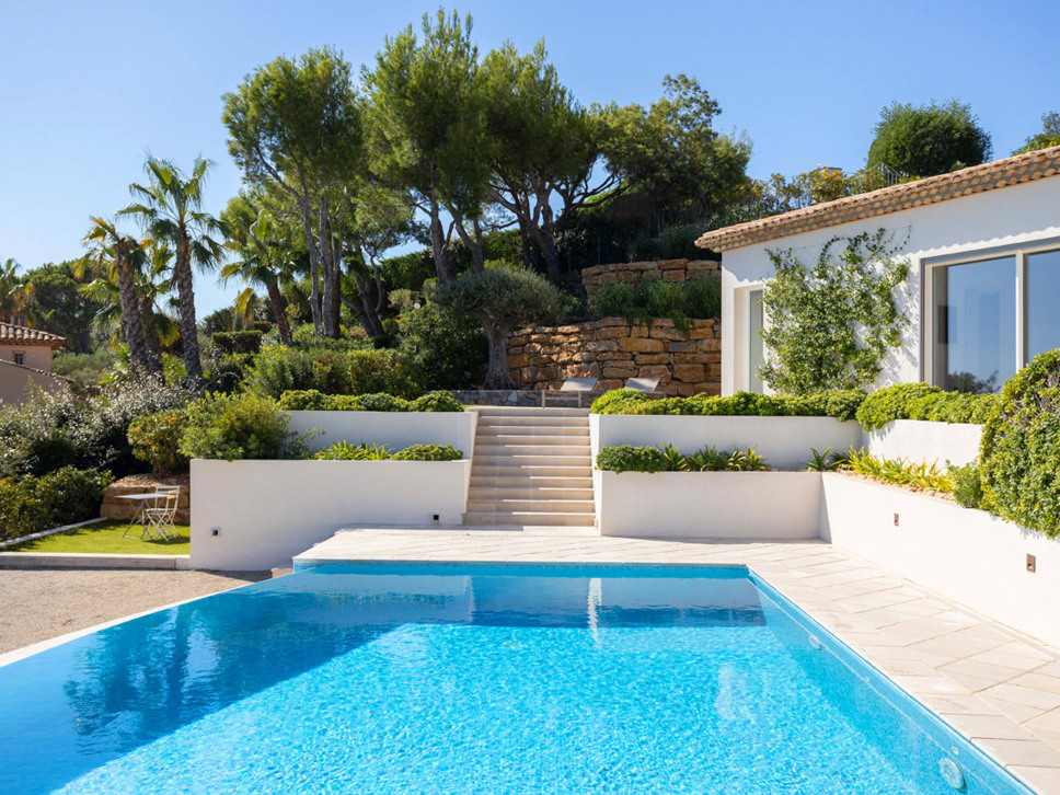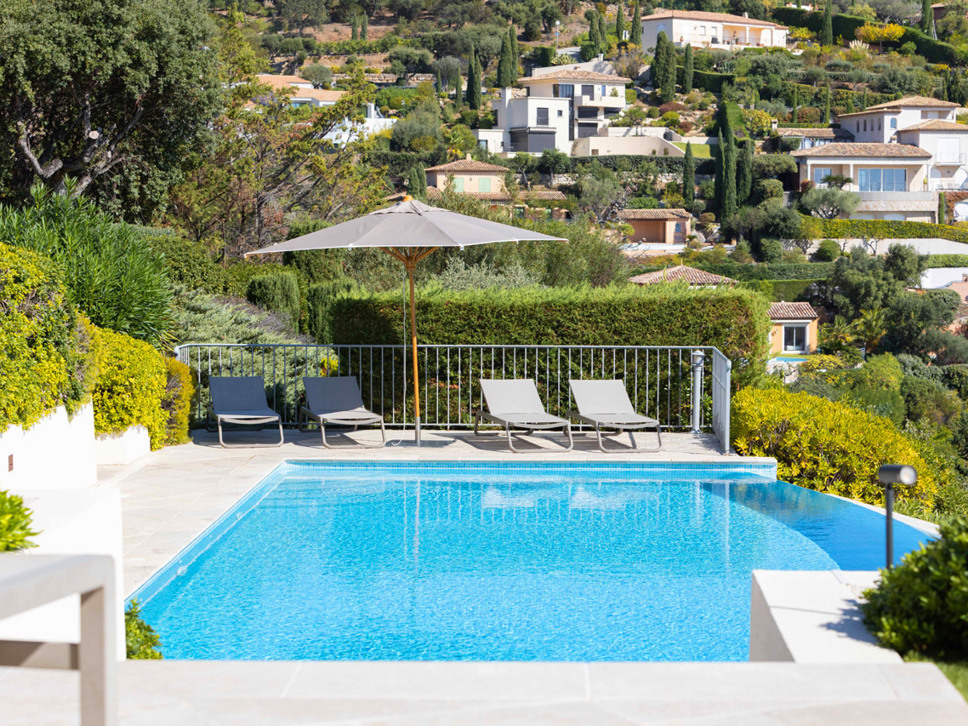 Luxe villa met privé zwembad te Sainte Maxime, Côte d'Azur. Prachtig panoramisch uitzicht op de Middellandse Zee. Rustig gelegen op één van de mooiste domaines in Sainte Maxime, vlakbij de brede zandstranden van Plage de La Nartelle. De villa is geschikt voor 8 personen.
