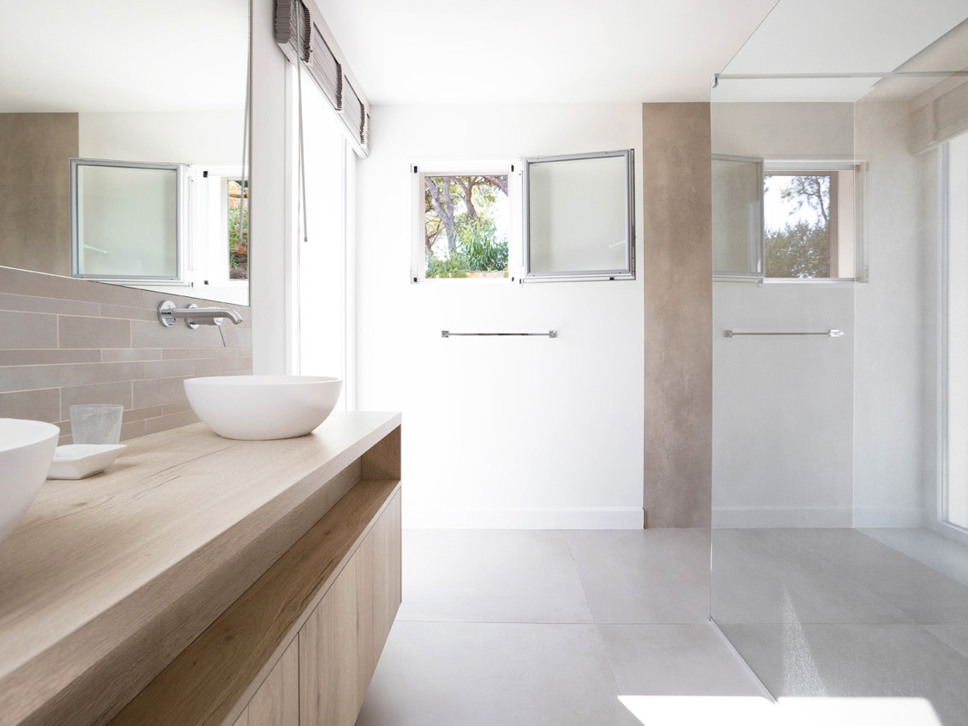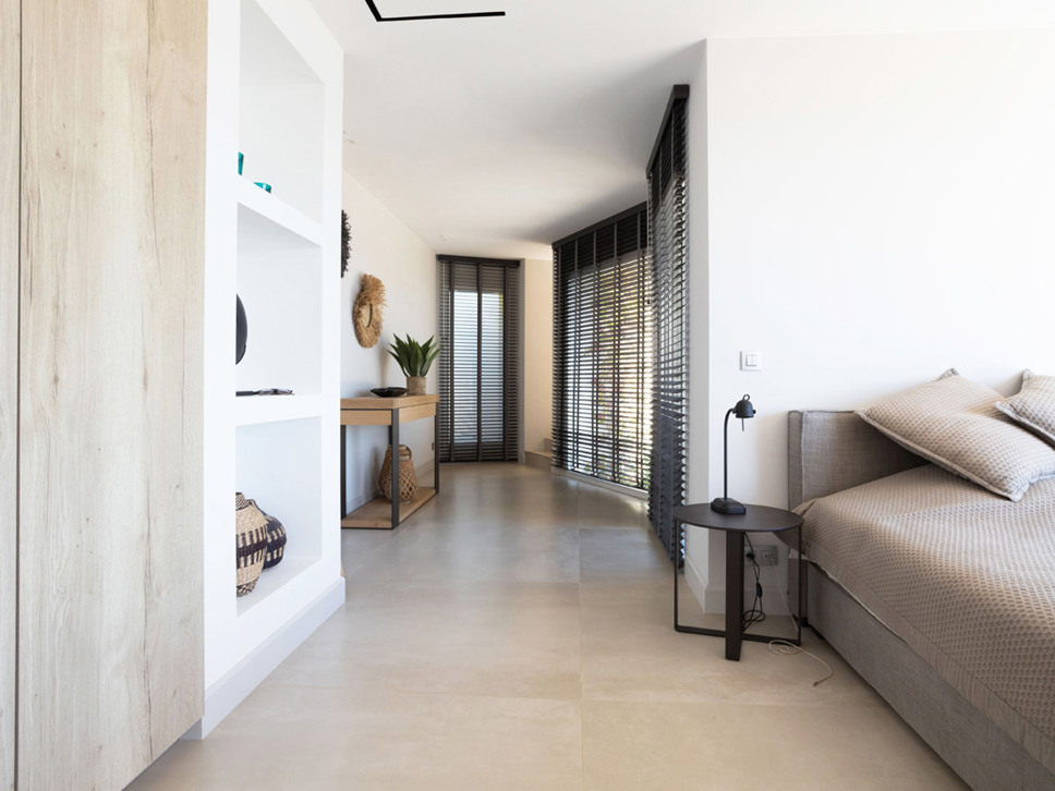 De villa beschikt over 4 slaapkamers en 4 badkamers. Alle slaapkamers zijn voorzien van airconditioning. Slaapkamer 1, is een royale suite en bevindt zich op niveau living en het terras aan de voorzijde. Deze slaapkamer heeft een tweepersoonsbed (180x200) en een ensuite moderne badkamer met douche. Openslaande deuren geven direct toegang tot het ruime terras.
