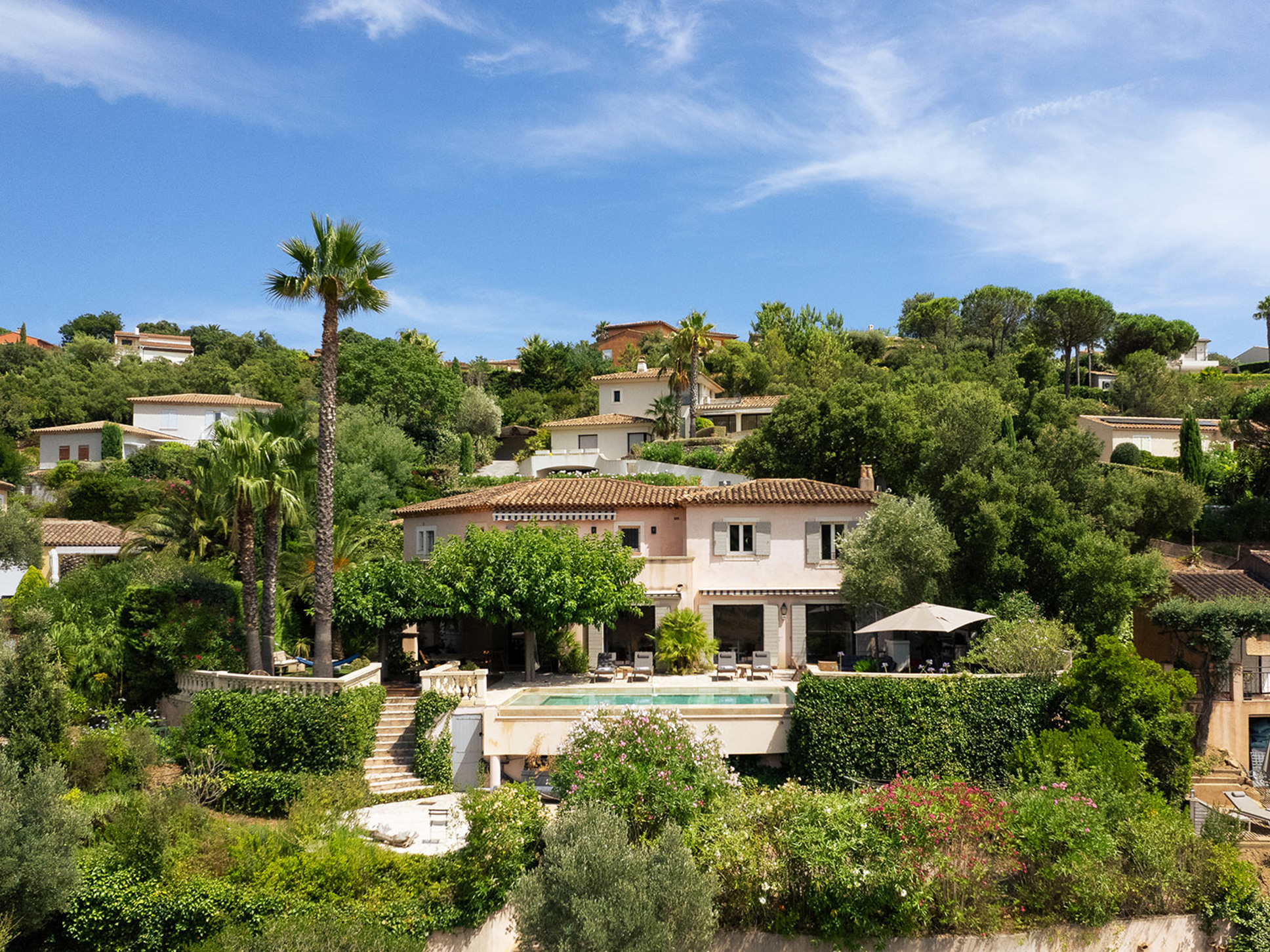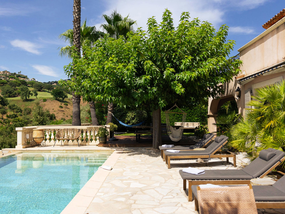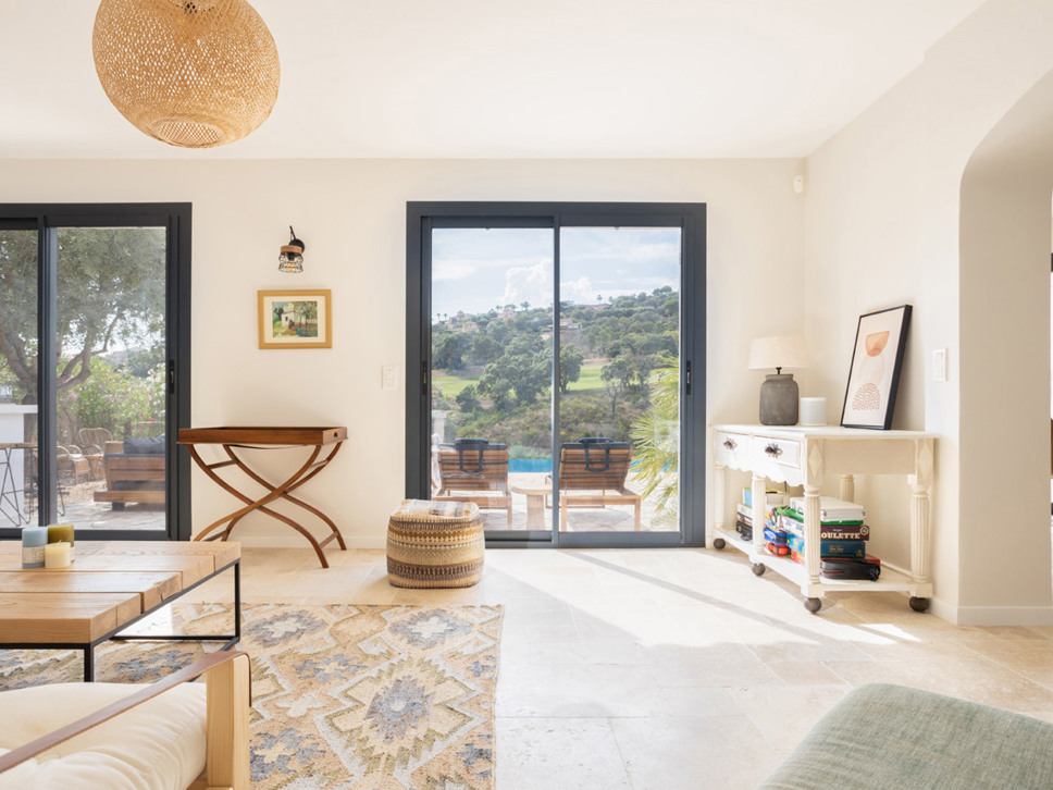 Luxe vrijstaande villa met privézwembad te Sainte Maxime, Côte d'Azur. Mooi eigentijds interieur. Gelegen op het Domaine du Golf, dichtbij het geliefde strand Plage de La Nartelle. Airconditioning. De villa is geschikt voor 6 volwassenen en 4 kinderen.