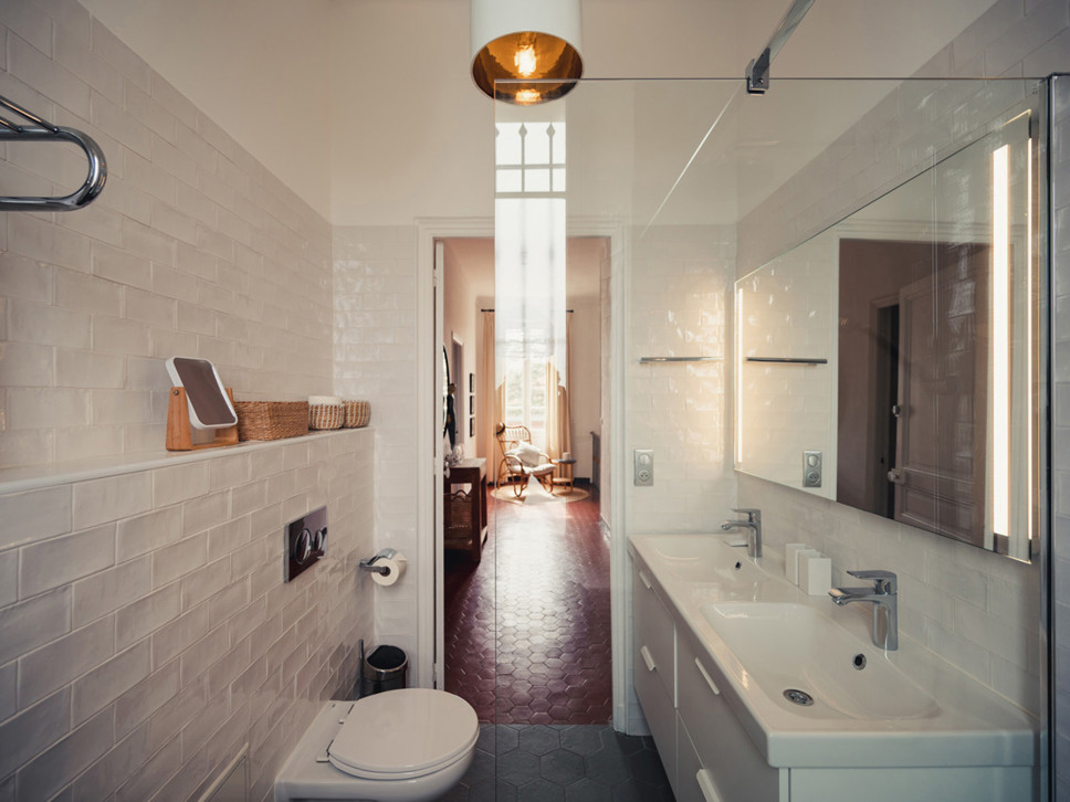 Slaapkamer 6 bevindt zich in het separate tuinhuis / zelfstandige studio. De studio bestaat uit een slaapkamer met een tweepersoonsbed, een badkamer met douche, een apart toilet, een kleine zithoek met en een eigen terras. De living, studio en alle slaapkamers zijn voorzien van airconditioning.