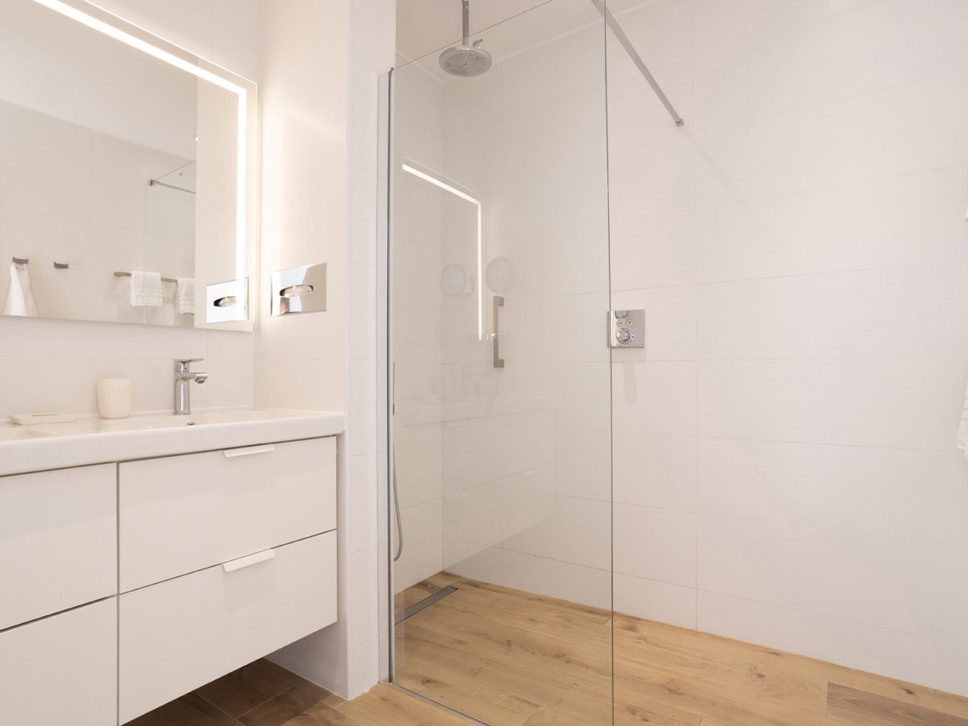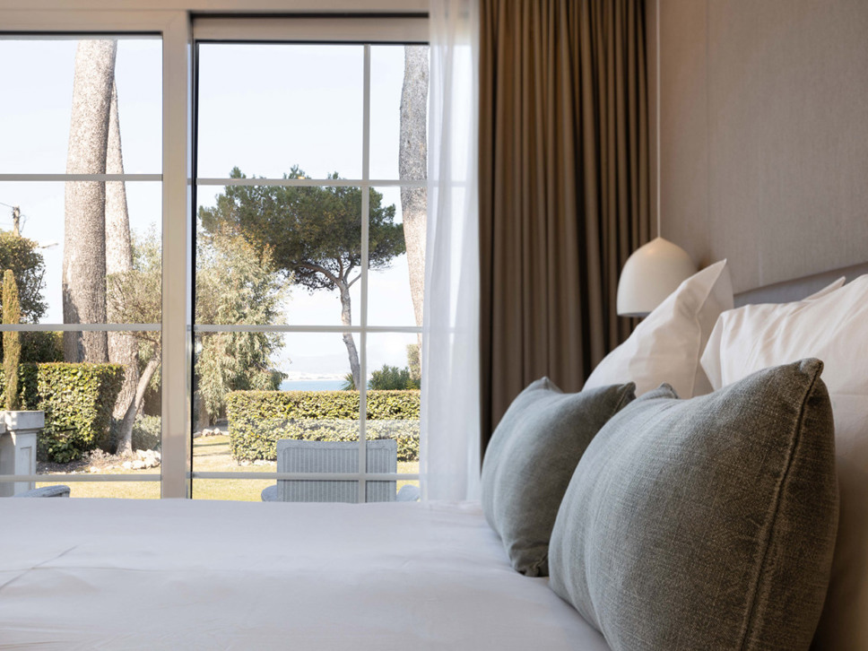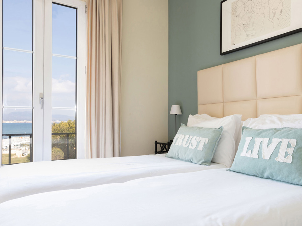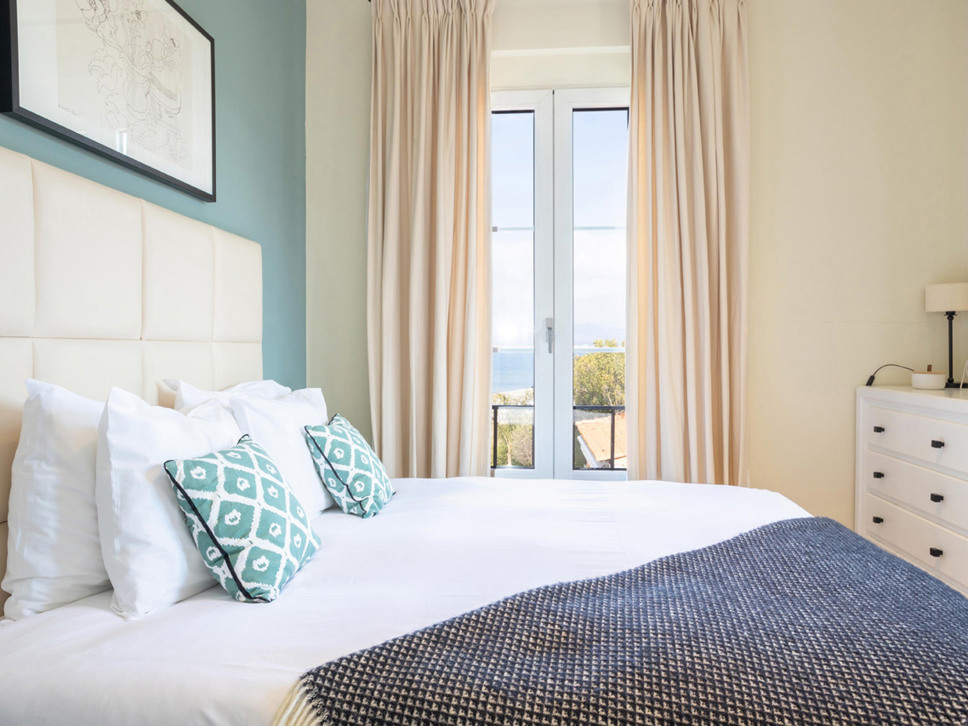 Er zijn 5 slaapkamers, allen gelegen op de 1e verdieping. Op deze verdieping bevindt zich ook een luxe moderne badkamer met inloopdouche en een apart toilet. Aan de voorkant liggen twee slaapkamers met uitzicht op zee. Deze hebben elk een tweepersoons bed (180x200 en 160x200). Eén van deze slaapkamers beschikt over een eigen wastafel. De derde slaapkamer heeft een tweepersoonsbed (160x200). De vierde slaapkamer heeft een tweepersoons bed (160x200)en een wastafel. In de vijfde slaapkamer staat een stapelbed. Deze kamer heeft ook een eigen wastafel en douche. Een kinderbedje is aanwezig. Alle slaapkamers zijn voorzien van airconditioning. WIFI is beschikbaar in de villa.