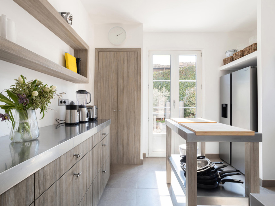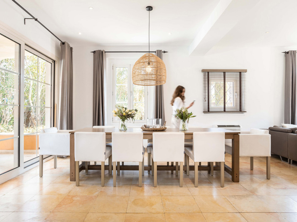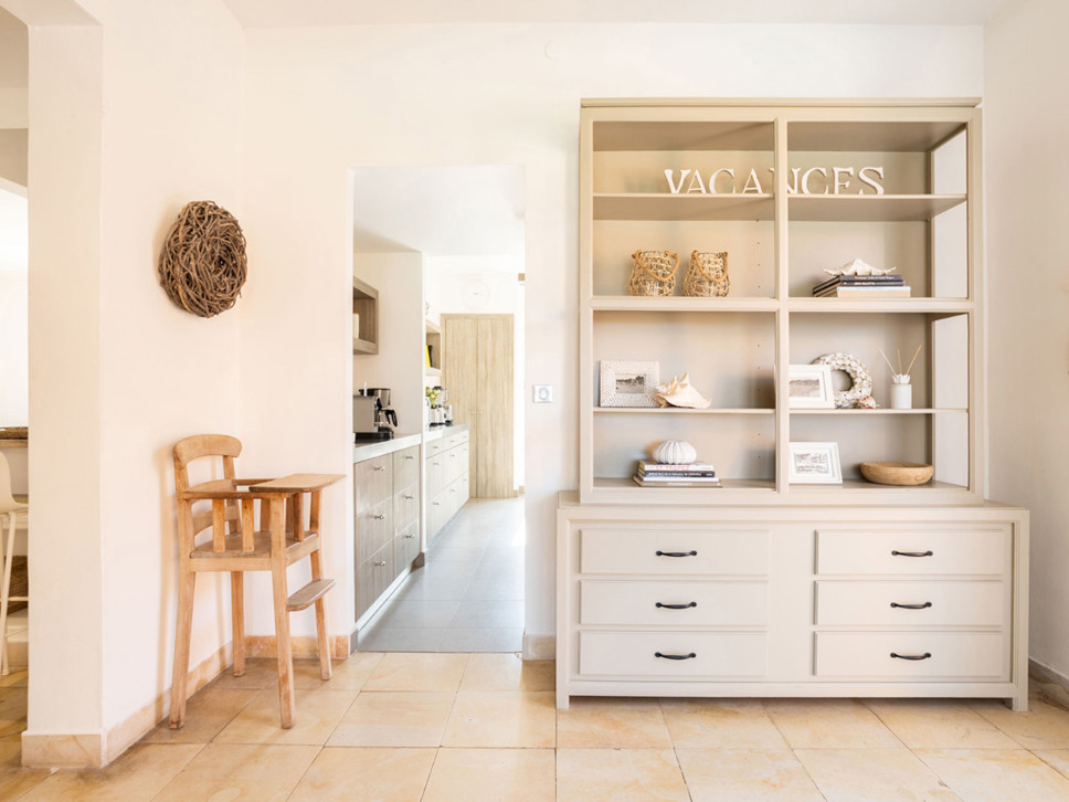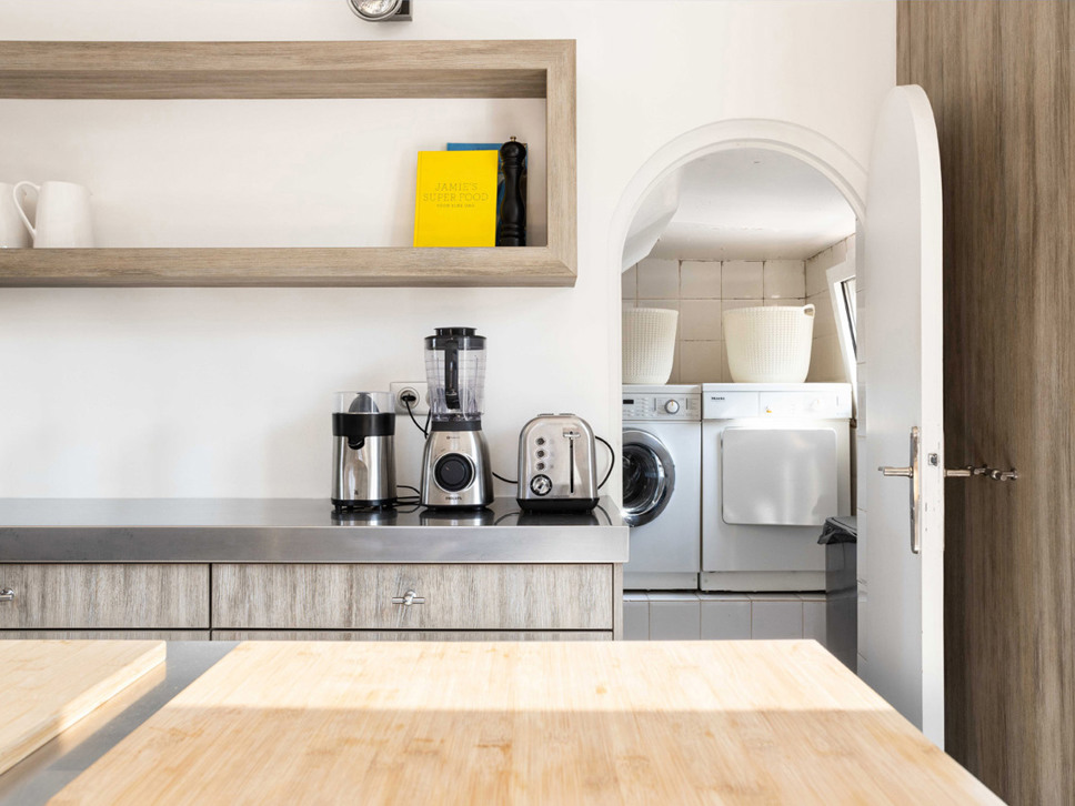 De villa is luxe en eigentijds ingericht. De living is ruim in een L-vorm met een moderne luxe zithoek en satelliet TV (NL kanalen) en een XXL eettafel voor 10 personen. De keuken is groot en voorzien van professionele apparatuur, o.a. groot fornuis met oven en frituur, afwasmachine, magnetron, Amerikaanse koelkast, Nespresso-apparaat (cupjes hiervoor dient u zelf mee te brengen), wasmachine en droger. Apart toilet en strijkruimte.